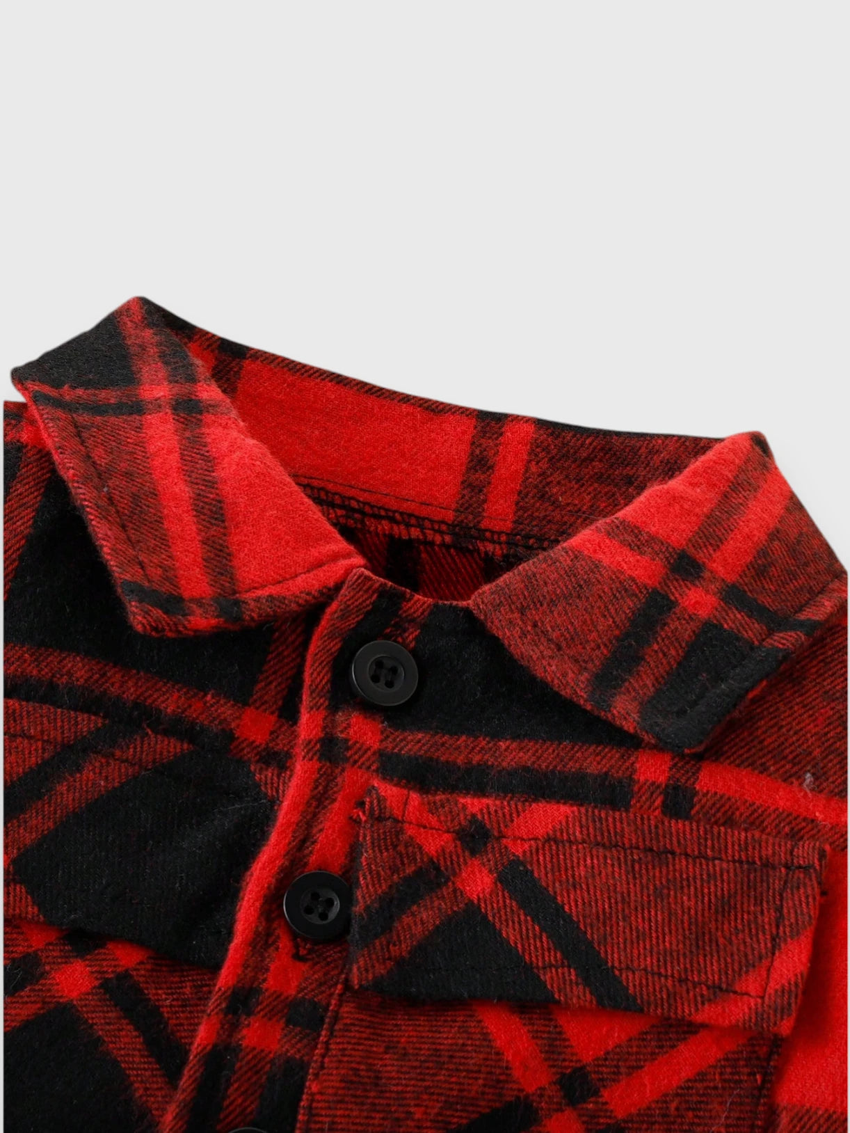 Dress your little one in timeless style with our 2-Piece Baby Boy Button-Up Plaid Shirt with Pant Set. This charming set includes a classic plaid button-up shirt paired with comfortable, coordinating pants. Perfect for special occasions, family gatherings, or everyday wear, this outfit offers both style and comfort, ensuring your baby boy looks his best no matter the occasion.