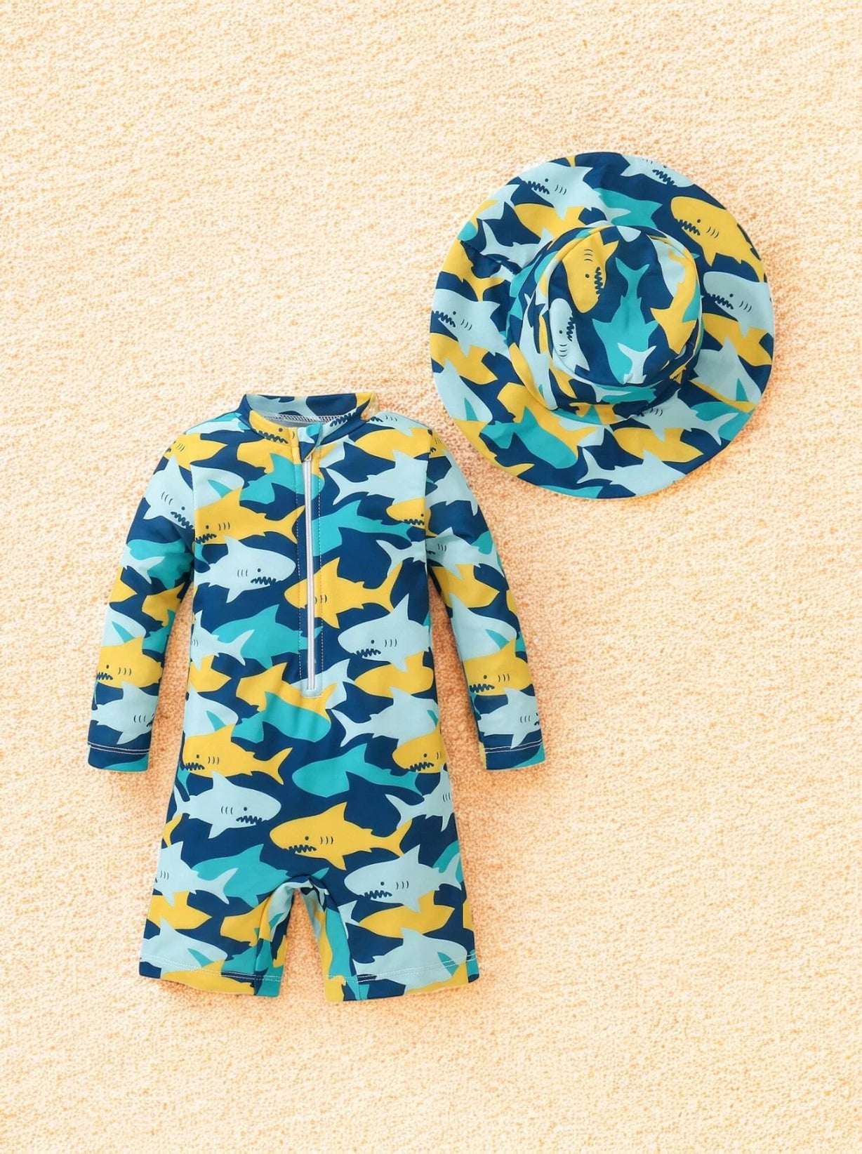 2 Pc Baby Boy Shark One-Piece Swim Suit