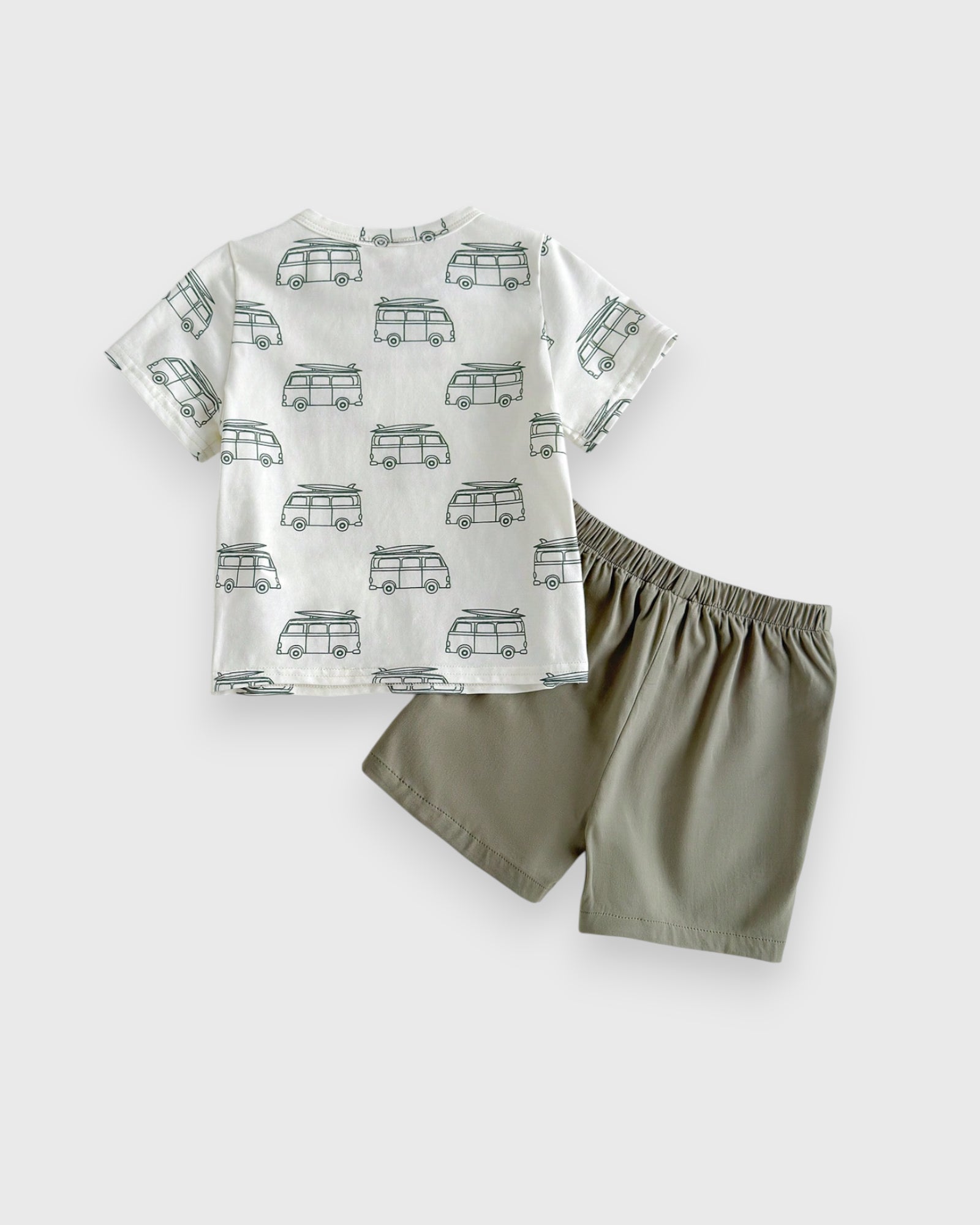 Catch the Wave of Cuteness 🌊🏄 Fuel his summer dreams with our Surf Buggy Set! Featuring a vintage-inspired graphic of a classic beach cruiser loaded with surfboards, this duo is made for sandy toes and salty air. The relaxed-fit tee and matching easy-on shorts are crafted from breathable cotton, ensuring he stays cool during high-noon heat. Whether he’s at his first pool party or building sandcastles, he’ll have the best "surf style" on the coast!
