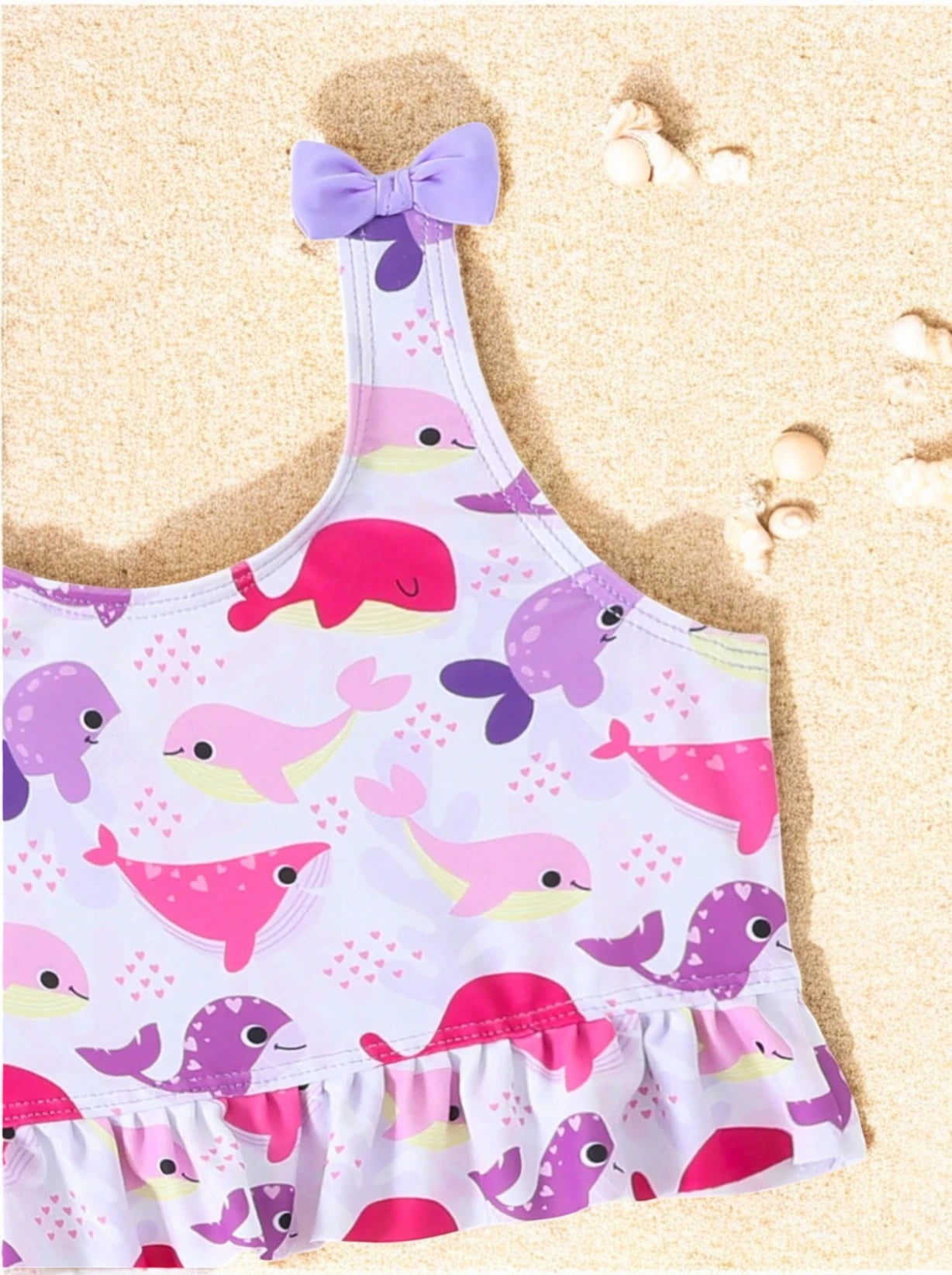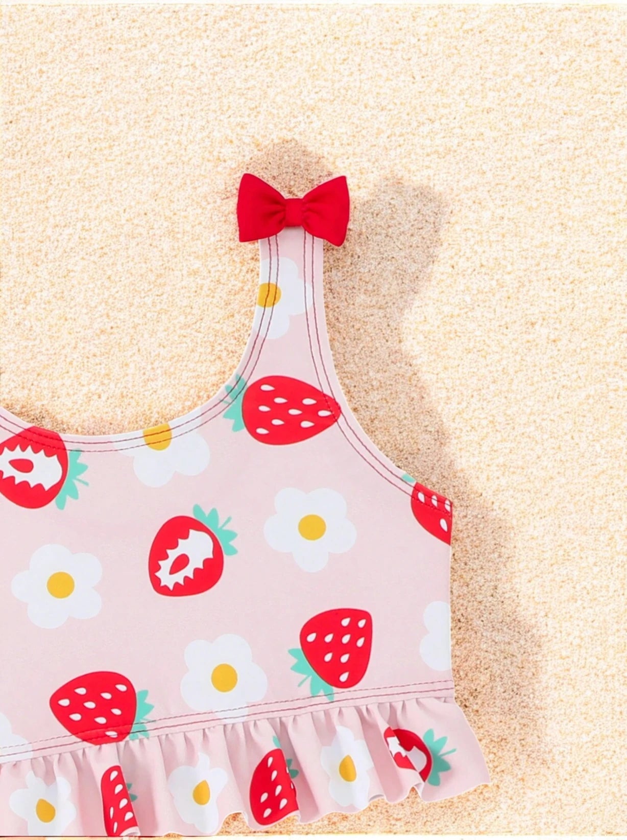 Make a splash in style with this adorable 2-piece set! Featuring a ruffle-trimmed one-piece swimsuit and a matching sun hat, it’s perfect for keeping your little one cute and protected on sunny pool or beach days.