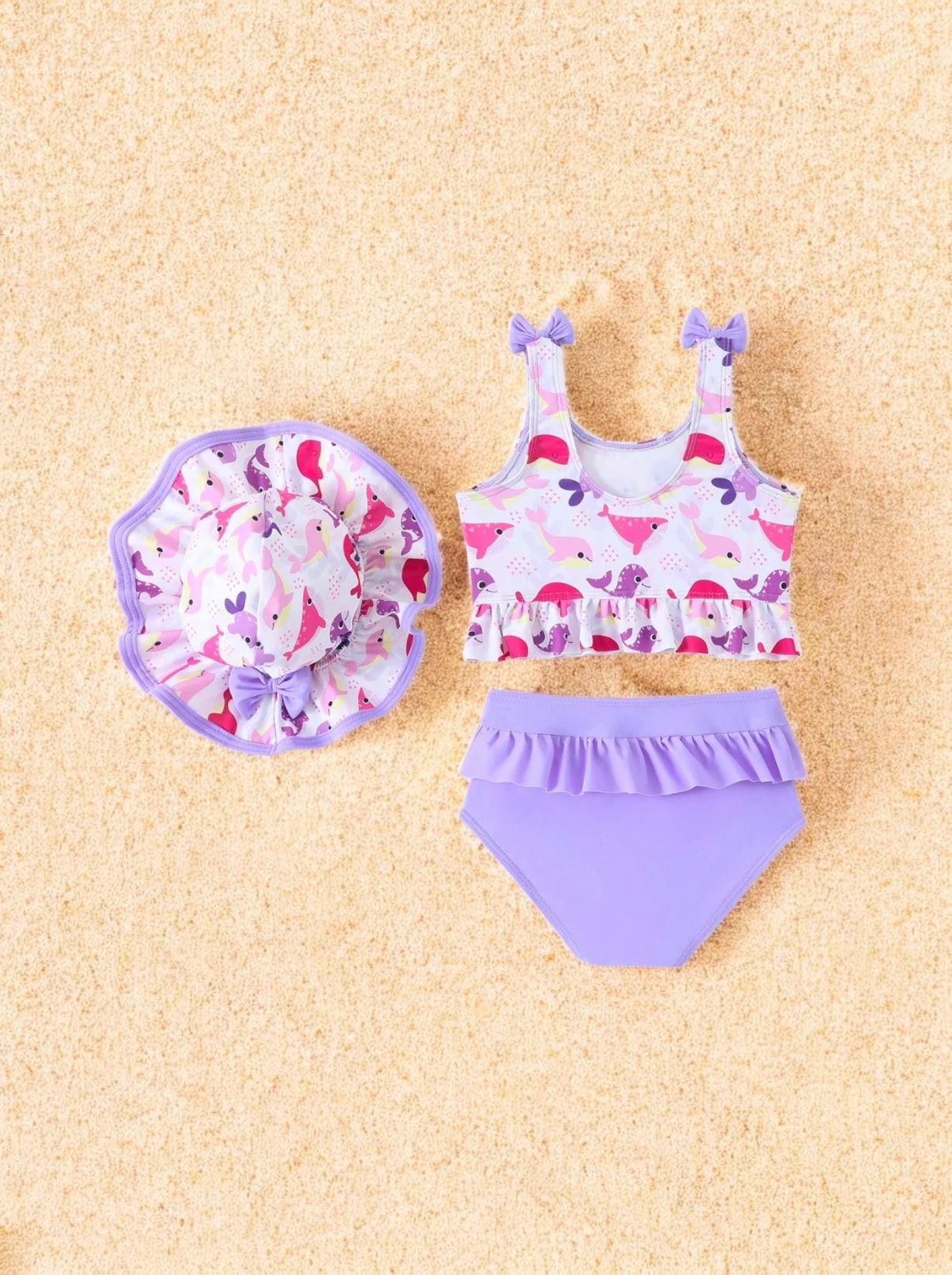 2 Pc Baby Girl Ruffle Swimsuit with Hat