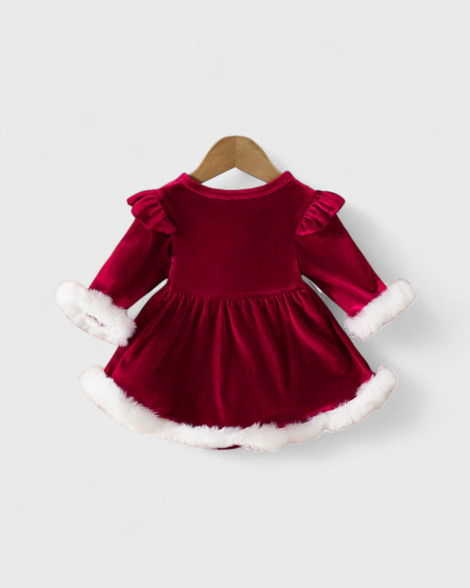 Dress your little one in festive charm with this 2-piece Baby Girl Santa Baby Velour Dress Set! Made from soft, plush velour, the dress features fluffy white cuffs and trim for a classic holiday look. Complete with a matching Santa hat, this adorable outfit is perfect for Christmas photos, parties, or cozy holiday celebrations.