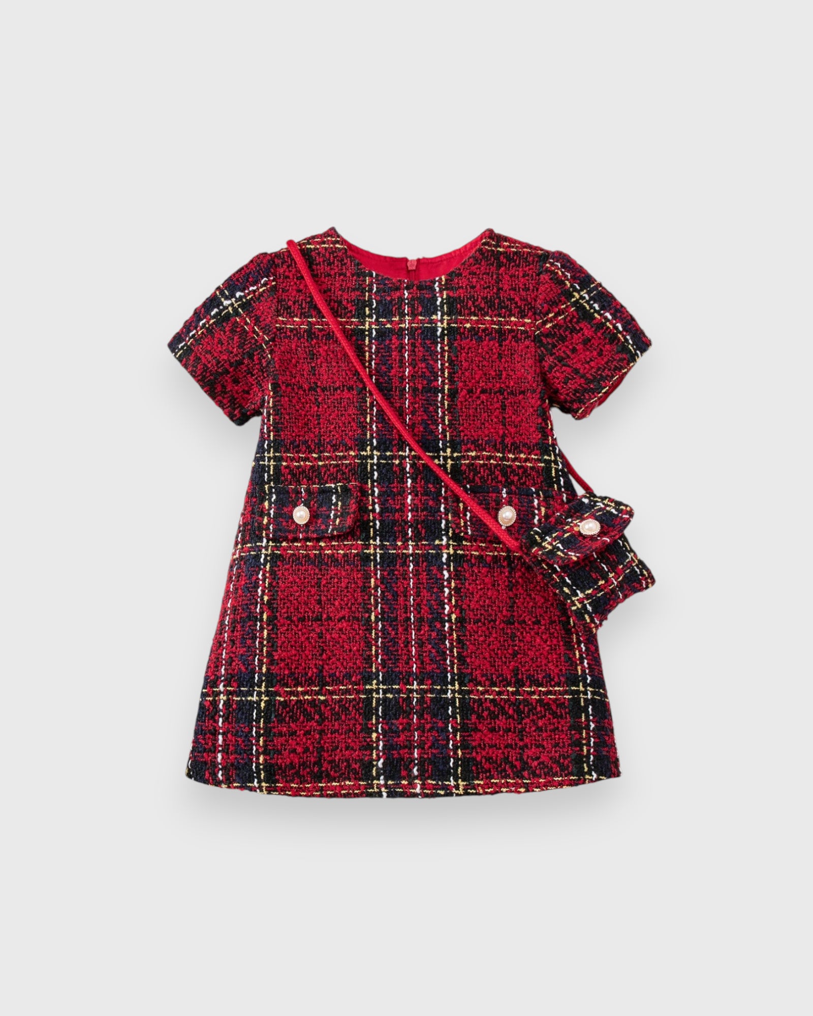 2 Pc Baby Girl Sparkle Tweed Dress with Bag