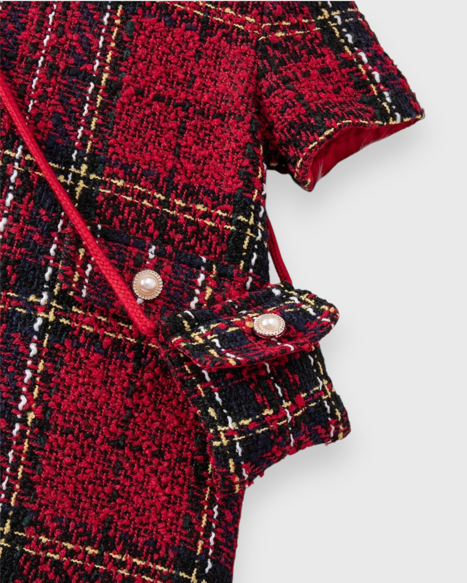 Chic and charming, this 2-piece set includes a sleeveless sparkle tweed dress with subtle shimmer and a matching mini handbag. Perfect for special events, holidays, or dressing up just because!
