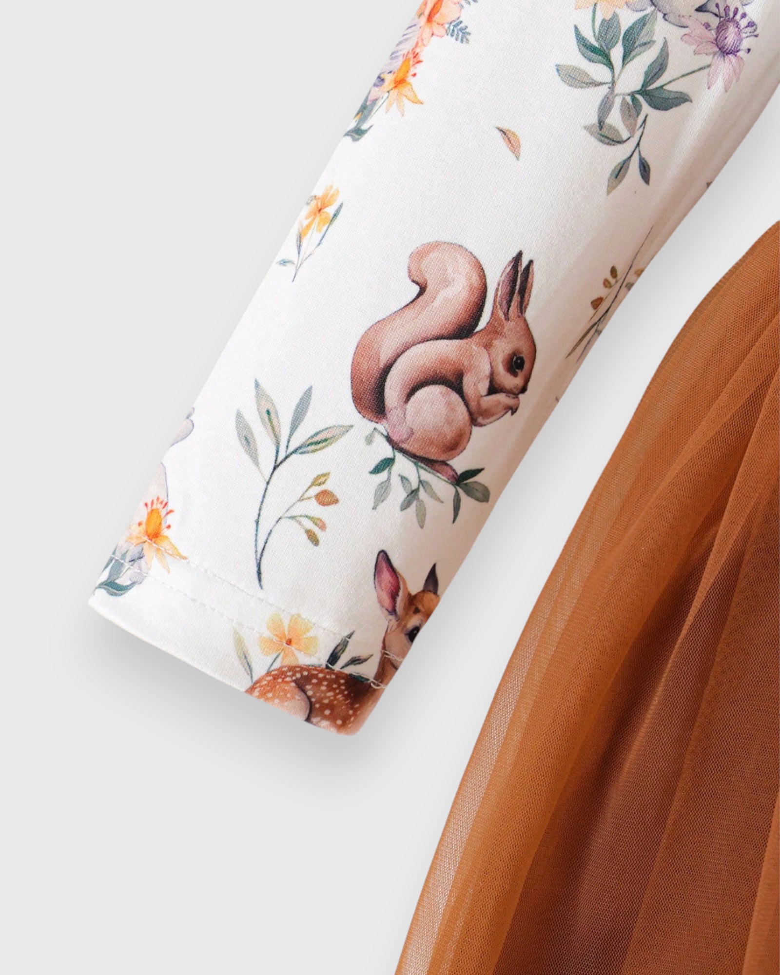 This Baby Girl Woodland Animals Tulle Dress features a charming woodland animal print and a soft layered tulle skirt — perfect for adding a touch of magic to her everyday or special occasions.