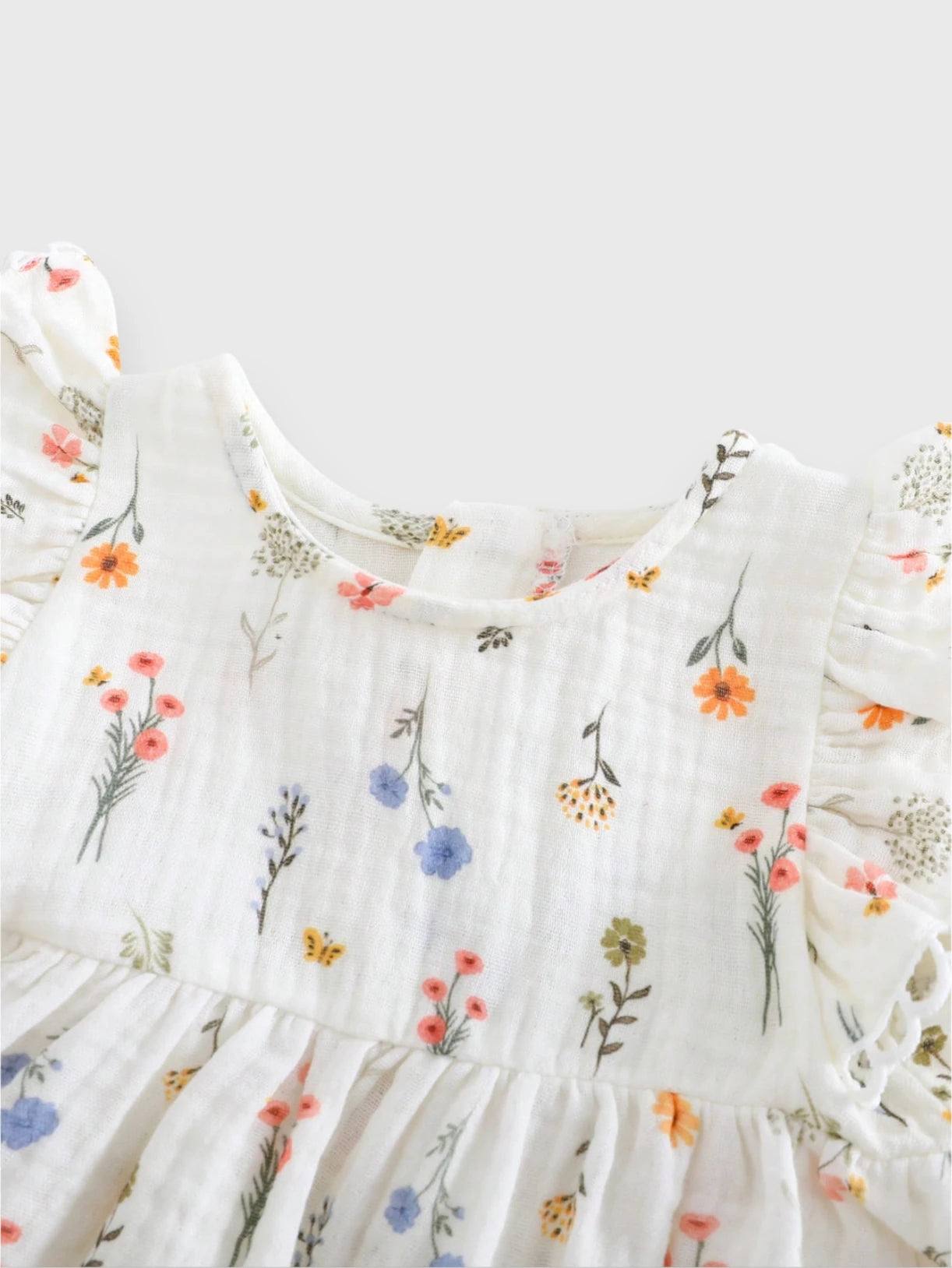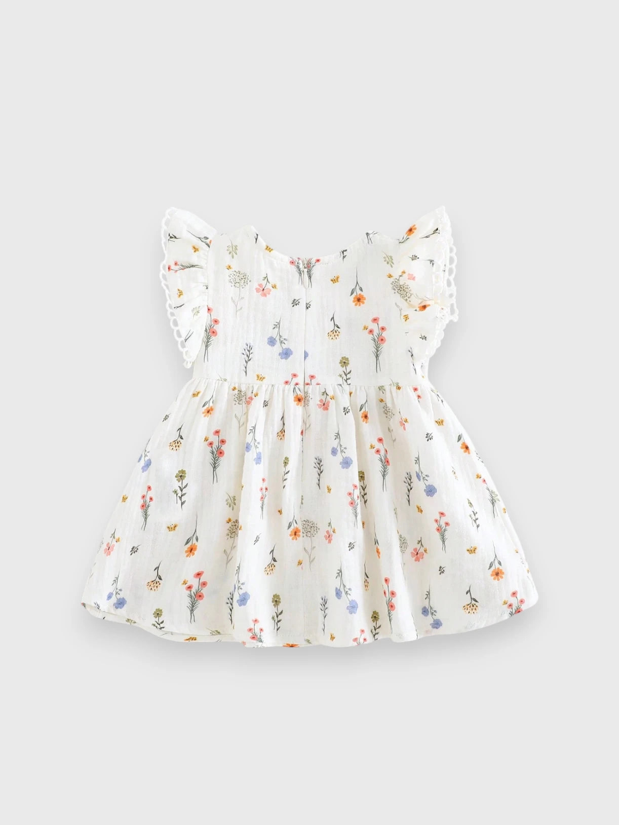 This charming two-piece set includes a delicate ditsy flower print cotton dress and a matching bow headband. The dress features a soft, breathable fabric for all-day comfort, with a gathered waist and flutter sleeves adding a sweet, feminine touch. Perfect for spring outings, family gatherings, or everyday wear.