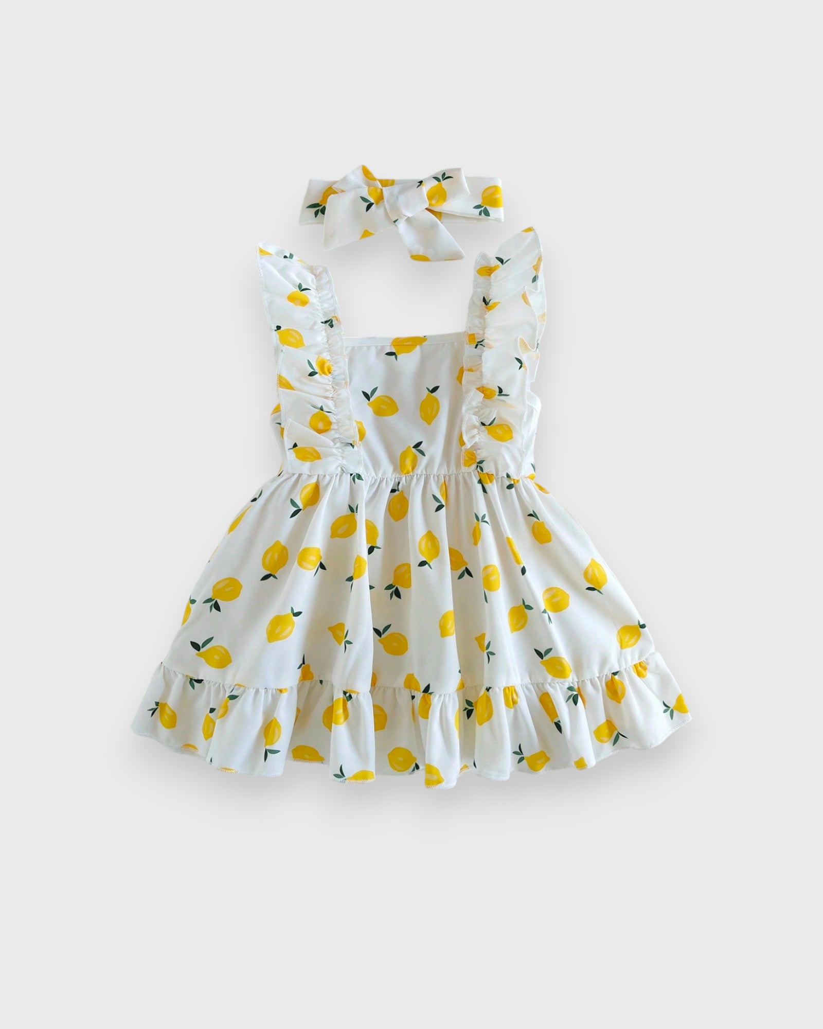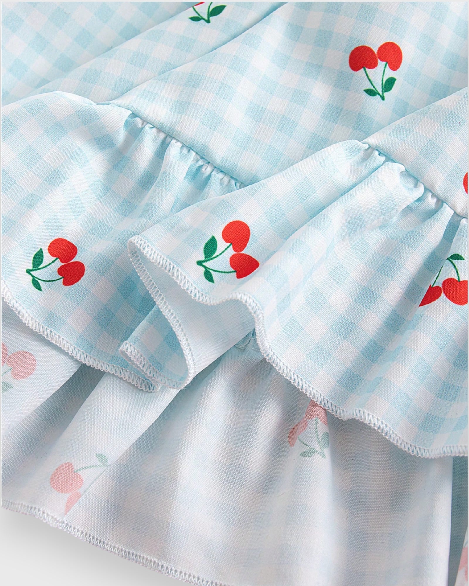 This adorable 2-Piece Baby Girl Fruit Gingham Dress Set features a sweet Fruit print on classic gingham fabric, complete with a matching bloomer for a charming and comfortable look—perfect for sunny days and special outings!