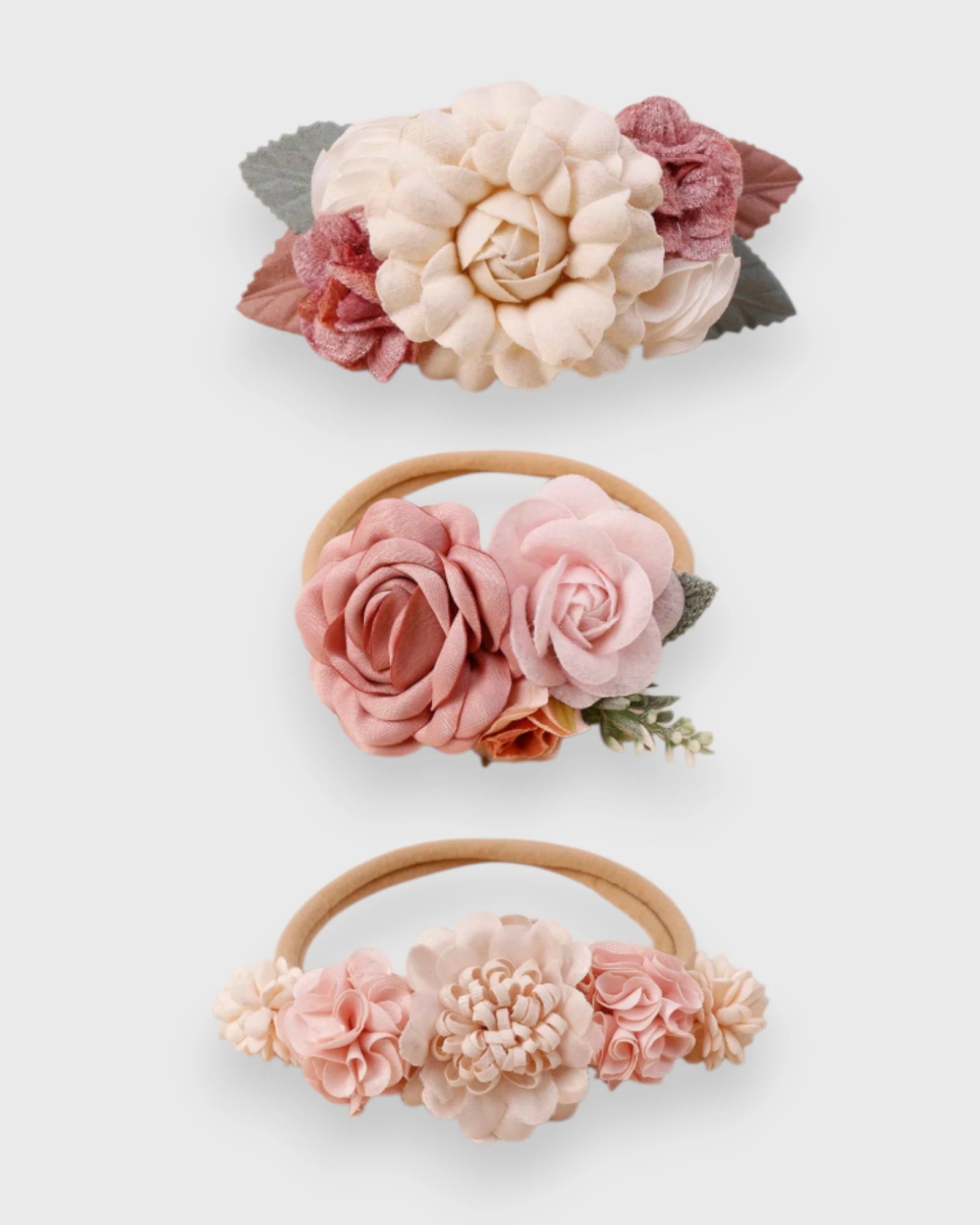 Add the perfect botanical finish to her ensemble with our 3-Piece Baby Girl Flower Headband Set. This darling collection features three unique headbands, each adorned with intricately crafted 3D floral appliqués in a soft, coordinated palette. Designed for both beauty and comfort, the bands are made from a gentle, high-stretch nylon that ensures a snug yet pinch-free fit for all-day wear. Whether she’s attending a spring garden party or getting ready for her first family photoshoot, these headbands provide a whimsical and polished touch to any boutique outfit.