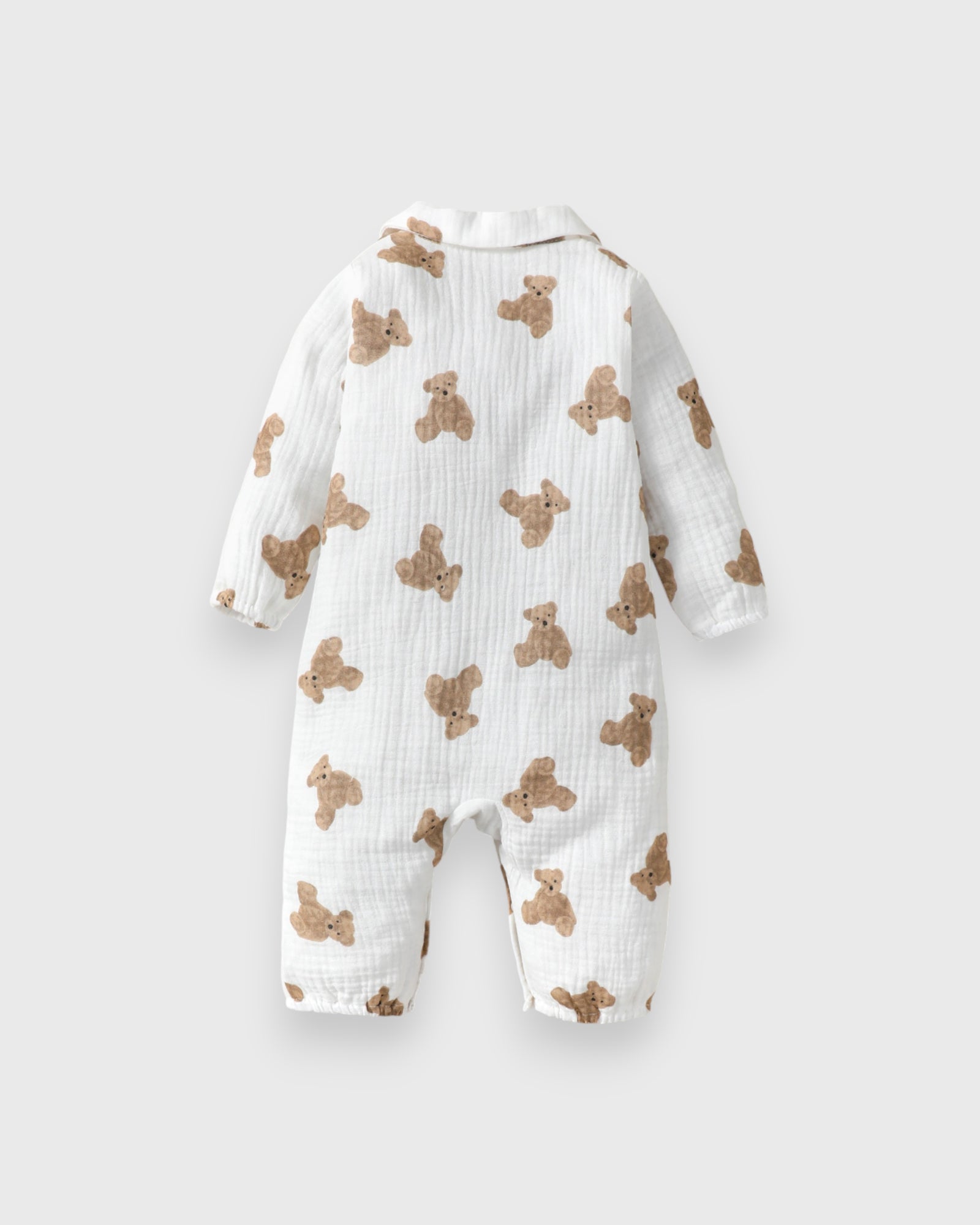 Get your little one ready for summer with this adorable gender-neutral baby boy/girl cotton brown bear print waffle Sleeper Pyjama . Made from soft and breathable materials, this comfortable Romper features charming brown bear prints on a waffle texture overall design. The neutral design makes it a great option for both baby boys and girls.