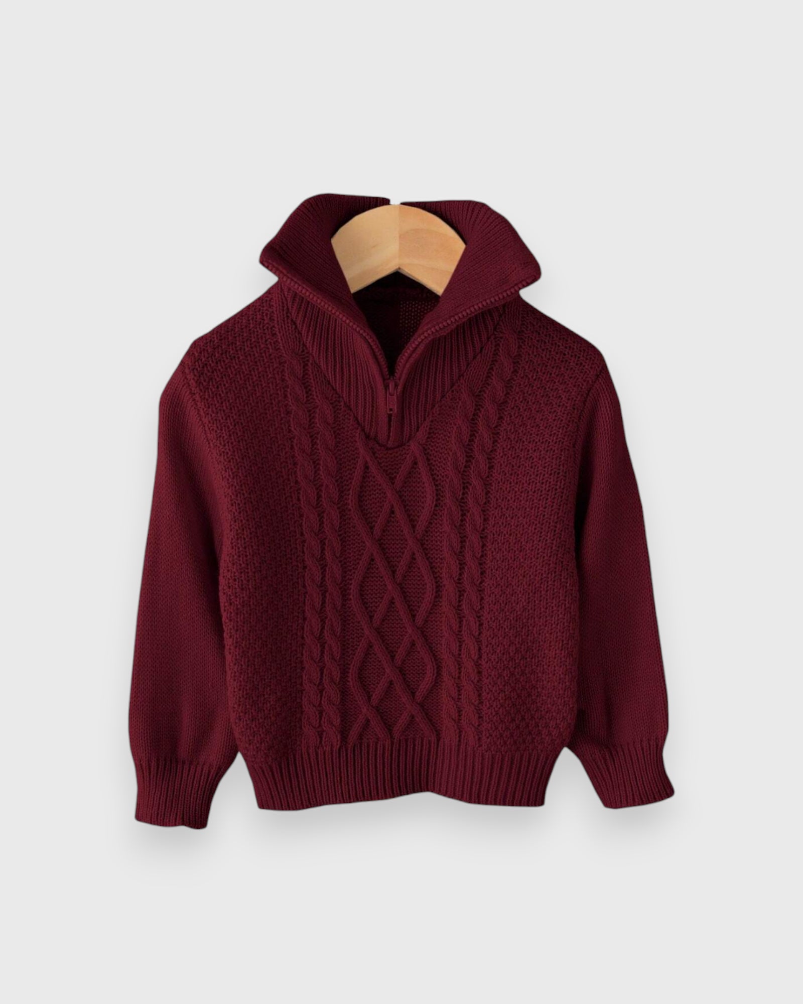 Keep your baby cozy and cute in our Baby Cable Quarter Zip Sweater. Designed with a classic cable-knit texture and an easy quarter-zip closure, this sweater combines comfort and style effortlessly. Perfect for layering on chilly days, it’s a timeless piece for any little one’s wardrobe.