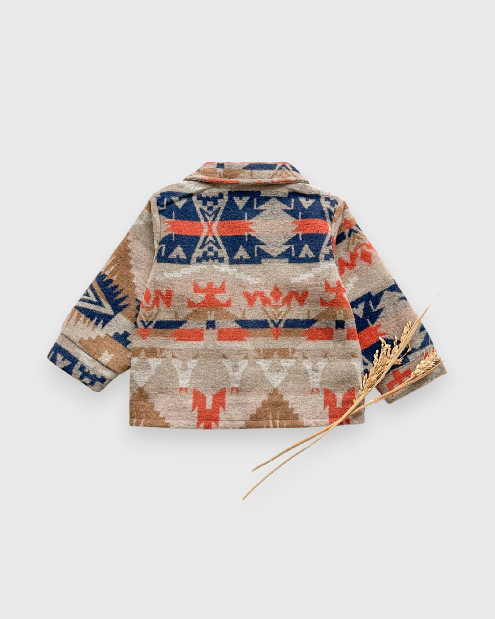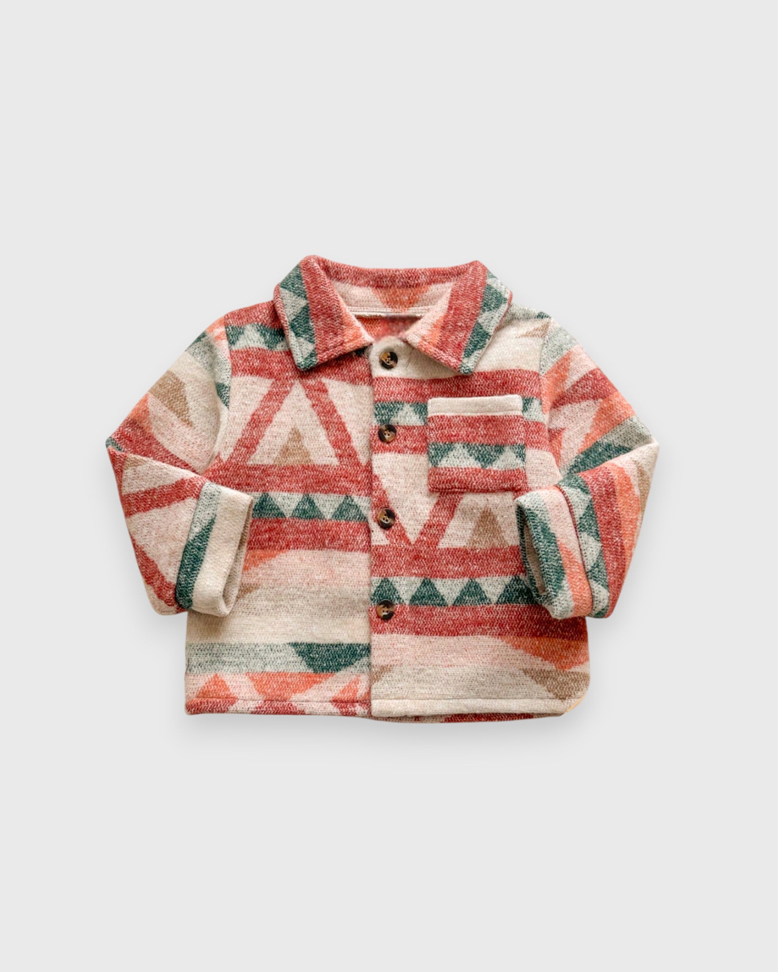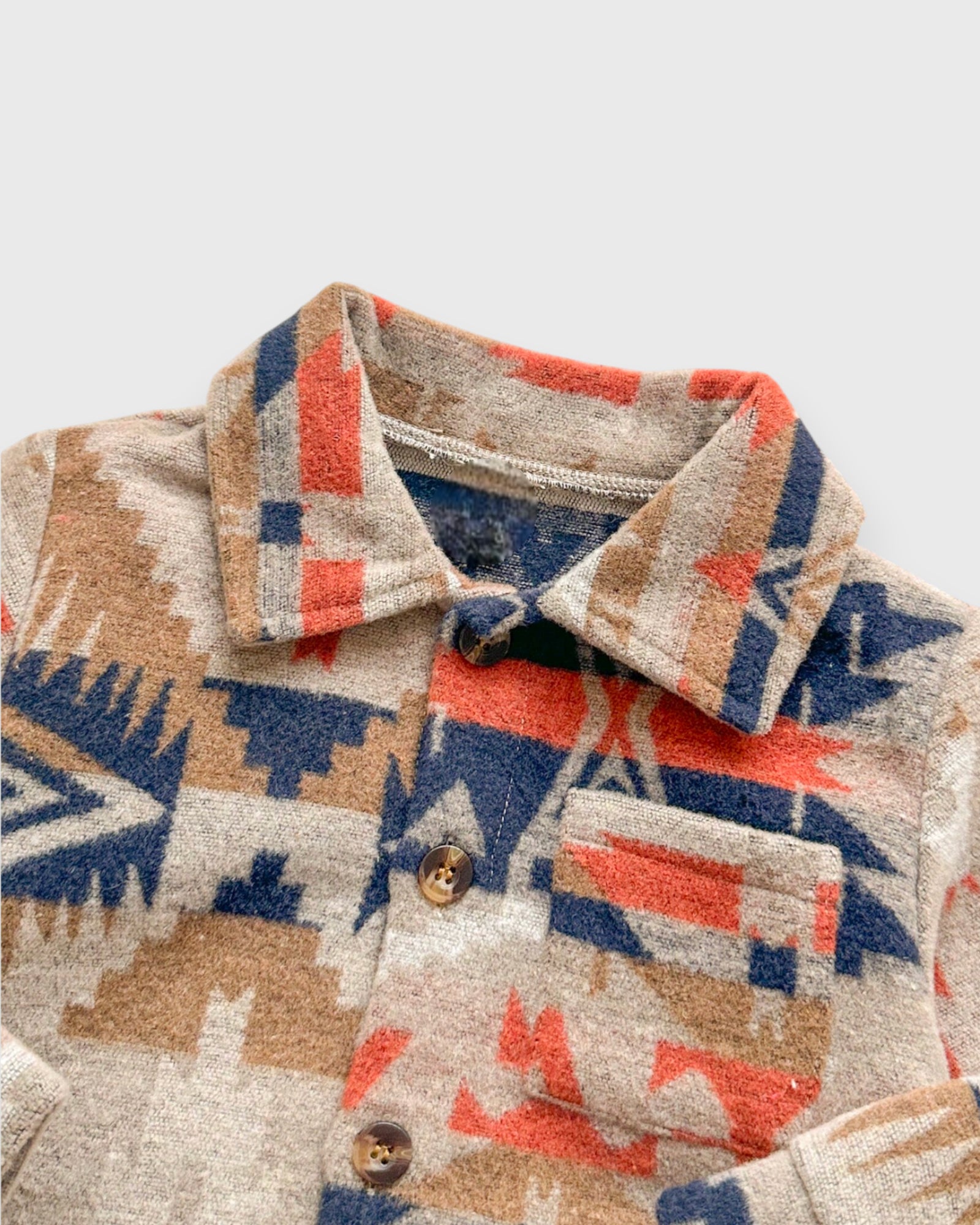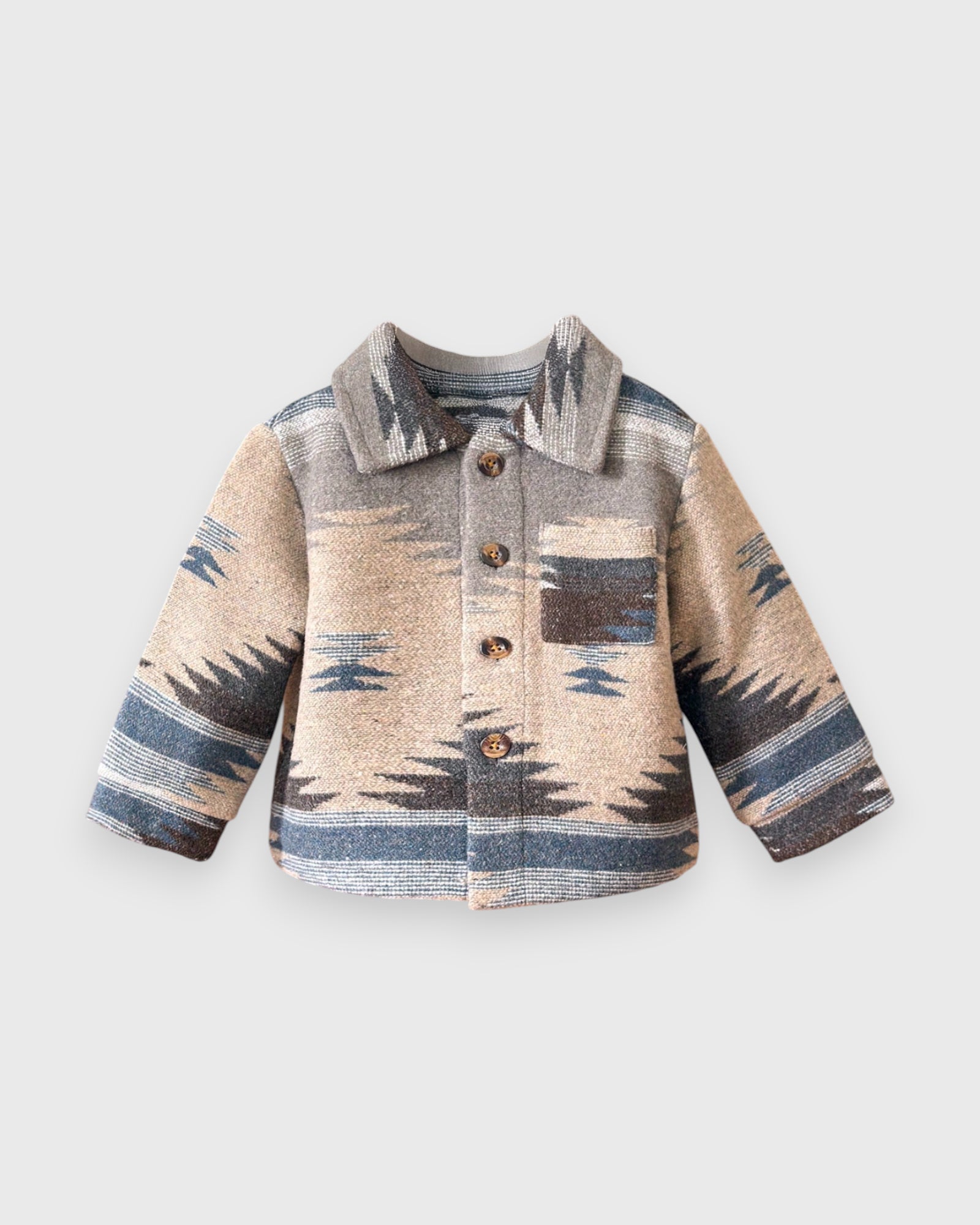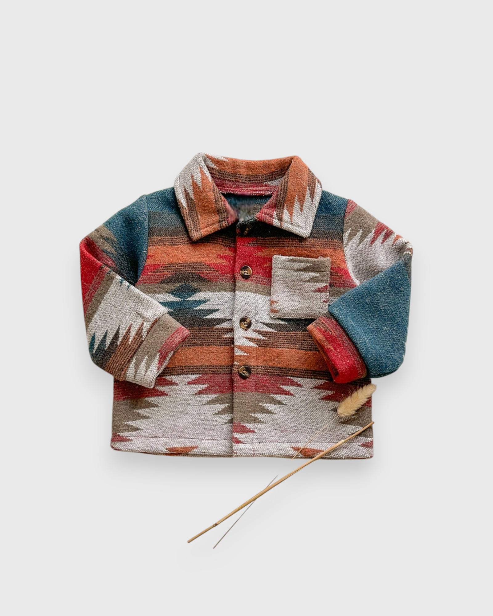 Keep your little one warm and stylish with our Baby Navajo Shirt Jacket. This cozy layer features a soft, comfortable feel and a beautiful Navajo-inspired pattern that adds a touch of charm to any outfit. Perfect for cooler days, it’s an easy throw-on piece