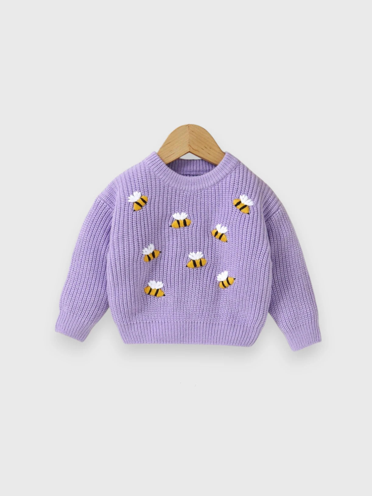 This adorable Baby Girl Bee Embroidered Knit Sweater features a charming bee embroidery on a cozy, soft knit. Crafted for warmth and style, it’s perfect for layering during cooler days. The sweater’s classic design and delicate detailing make it a sweet and stylish addition to any baby girl's wardrobe. Ideal for everyday wear or special outings.