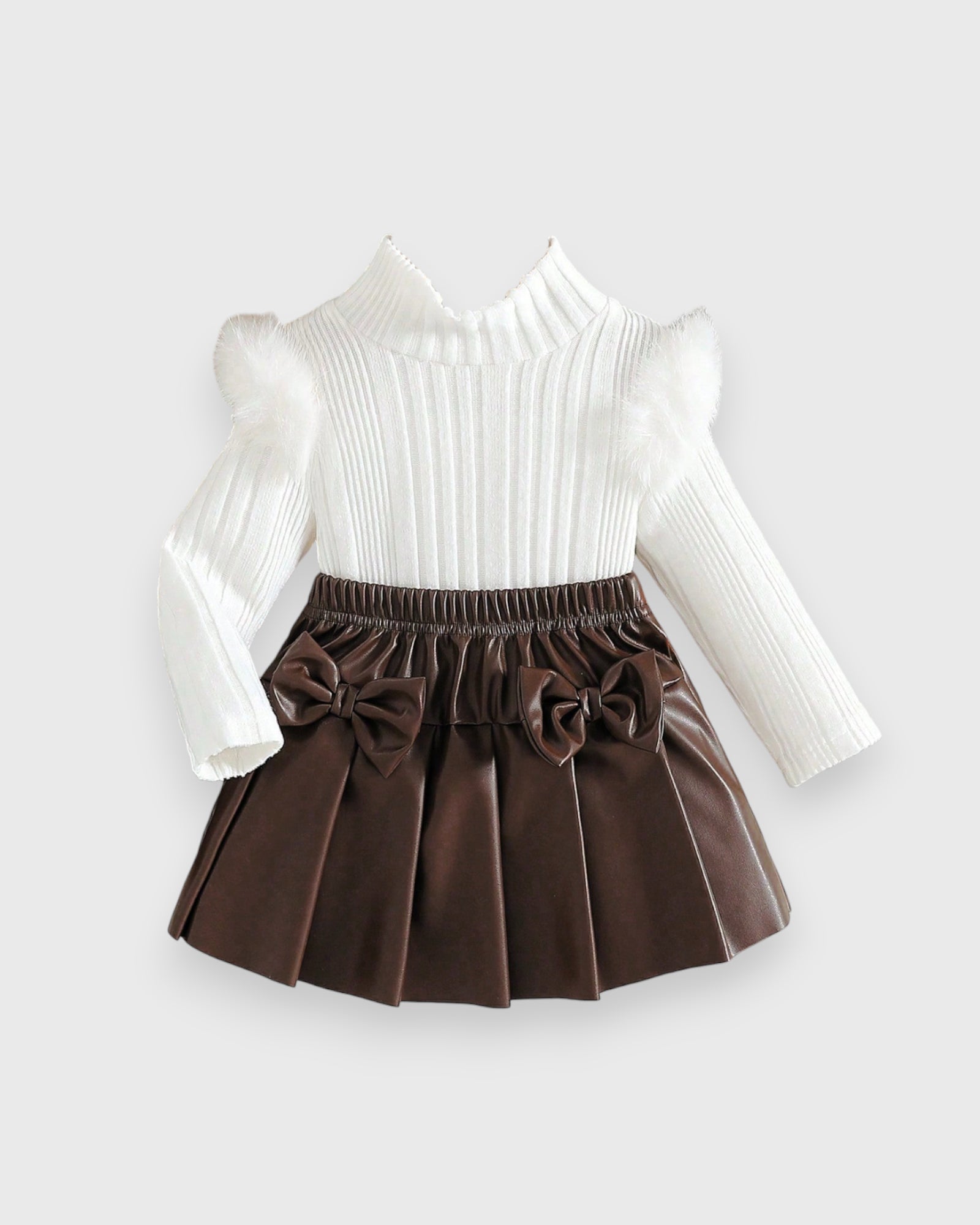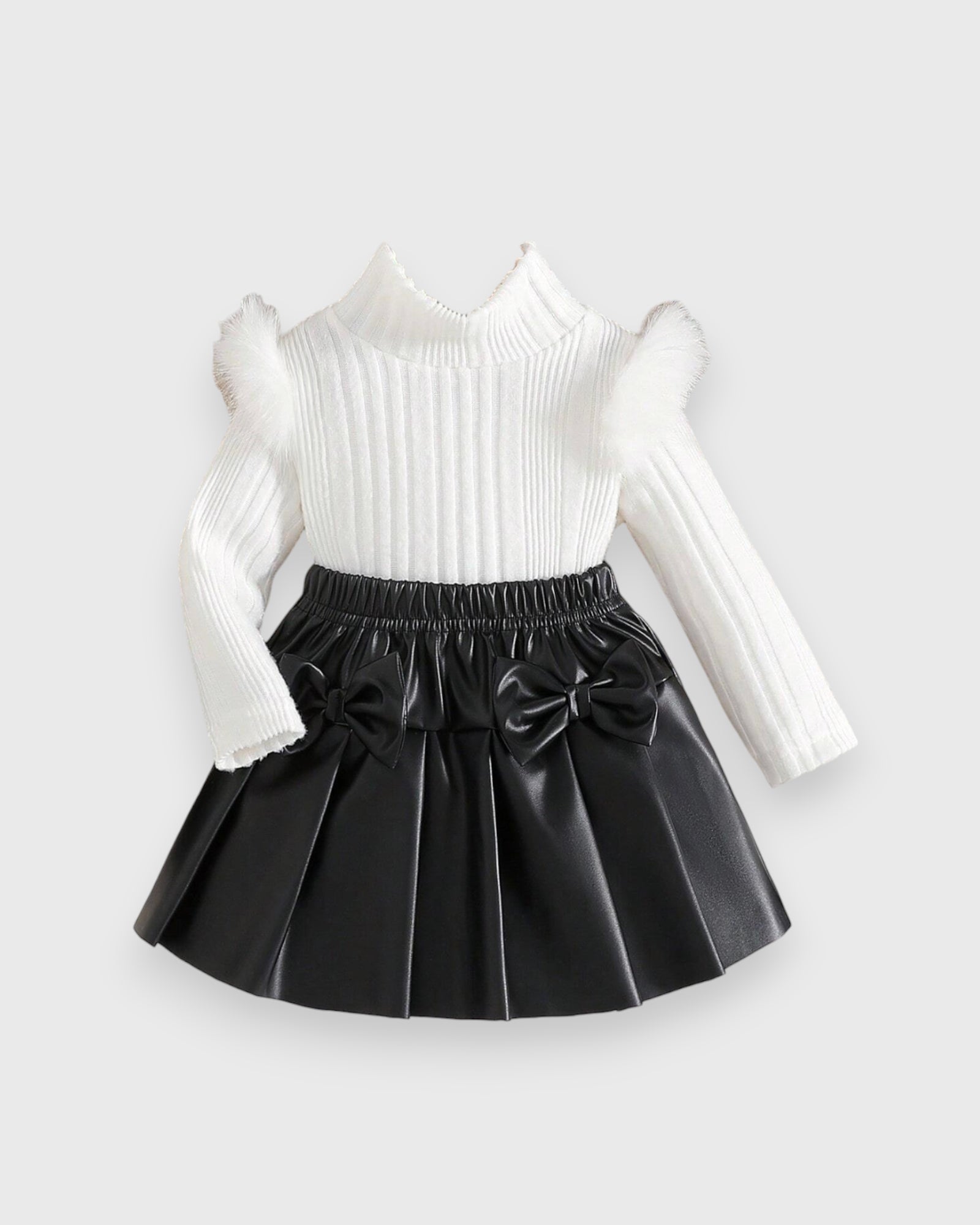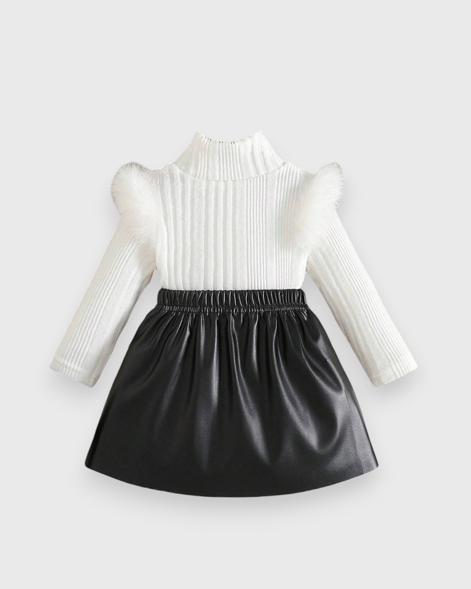 Soft, stylish, and totally adorable—this Baby Girl Fuzzy Shirt with Pleather Skirt set brings the perfect mix of cozy and chic. The fuzzy top adds warmth and sweetness, while the pleather skirt gives a trendy, fashion-forward edge. Whether it’s for family outings, photos, or a little dress-up fun, this outfit lets your little one shine with comfort and style.
