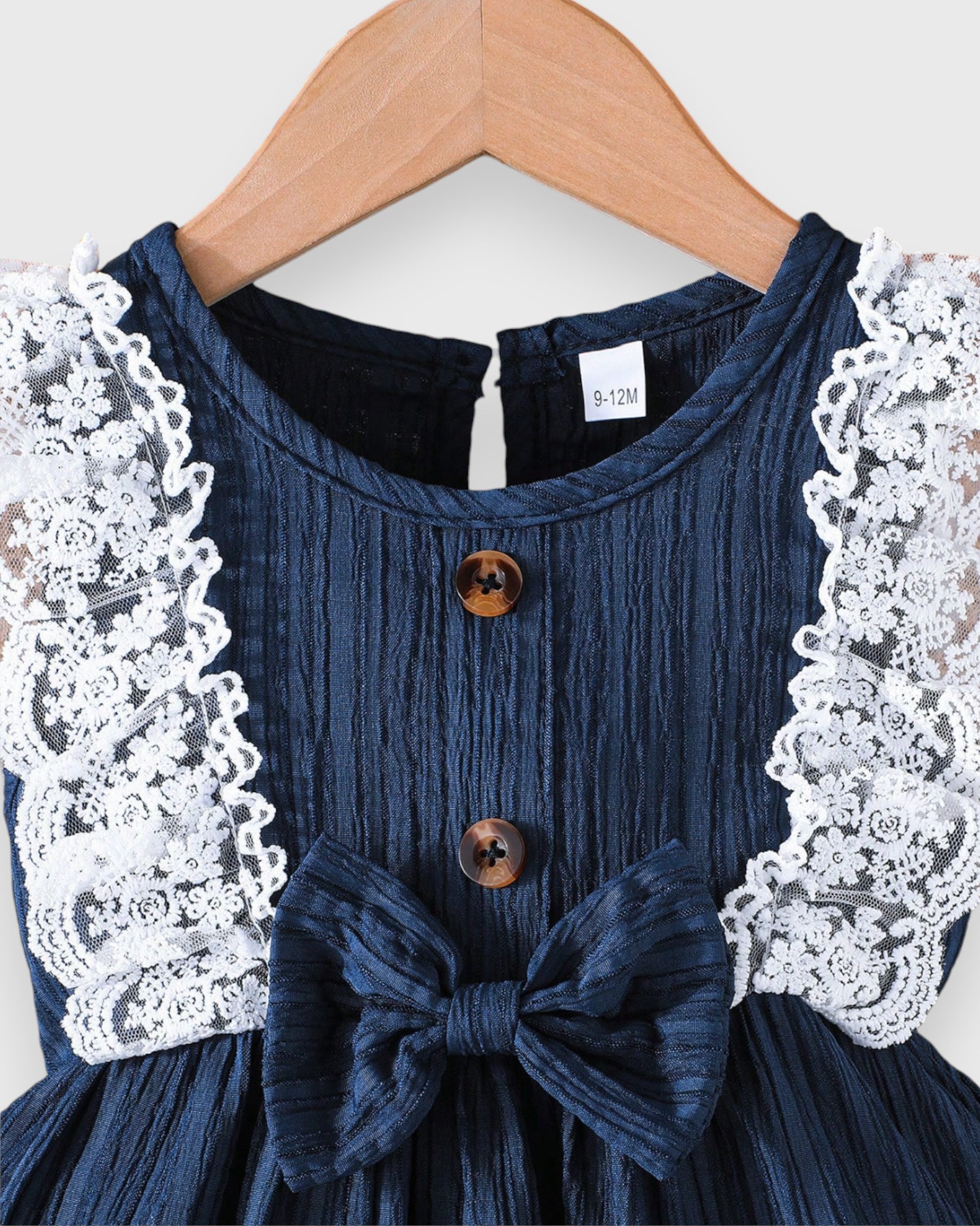 Our Lace Flutter Sleeve Dress is designed for life’s most magical milestones. Featuring delicate lace overlays and sleeves that flutter like butterfly wings, this dress brings a sense of wonder to any occasion. Whether she’s twirling at a wedding or celebrating her very first birthday, this dress ensures she is wrapped in elegance and comfort from head to toe.