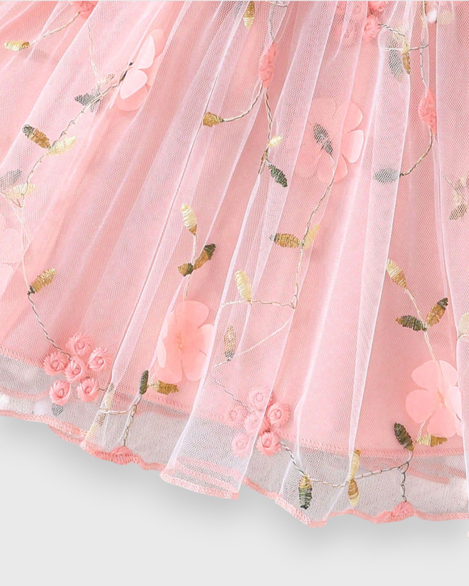 This adorable Baby Girl Mesh Tulle Skirt Dress features a soft ribbed bodice for comfort, a dreamy mesh tulle skirt, and delicate 3D flower accents—perfect for special occasions and picture-perfect moments!