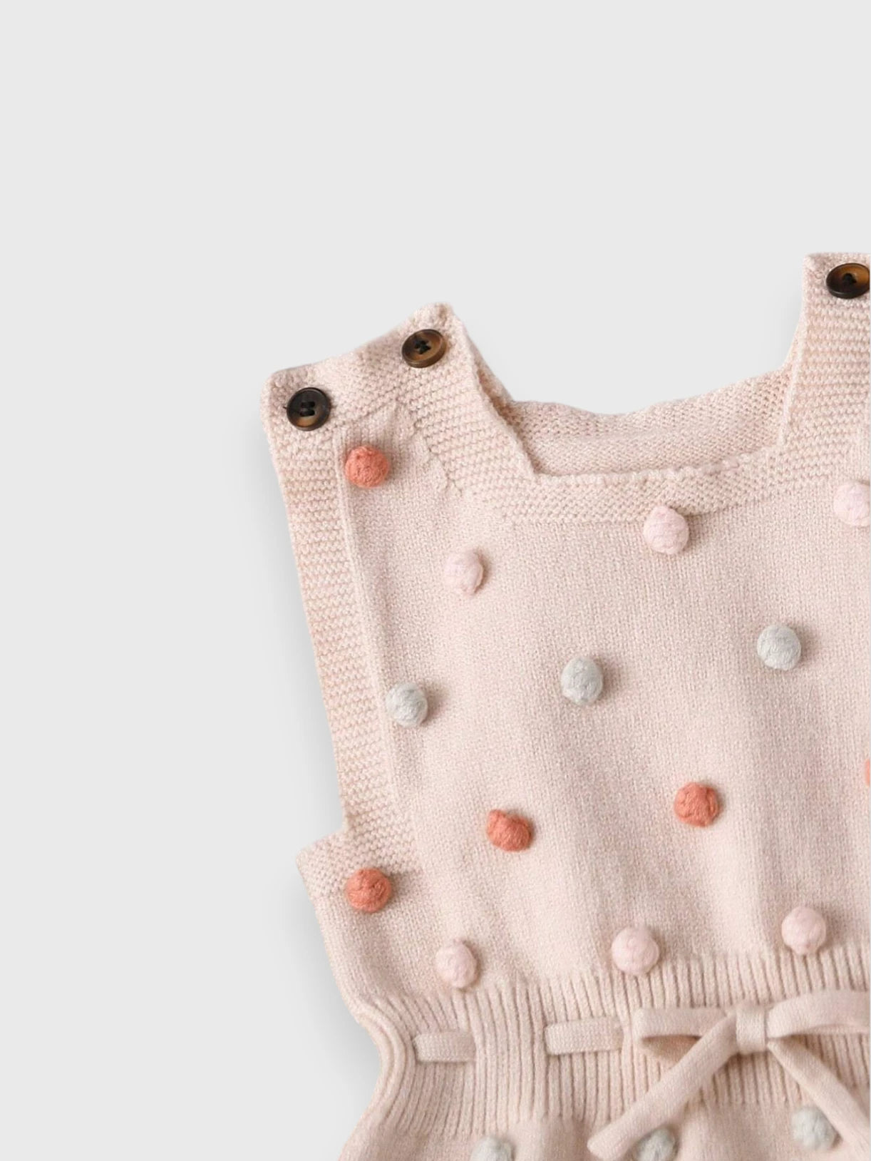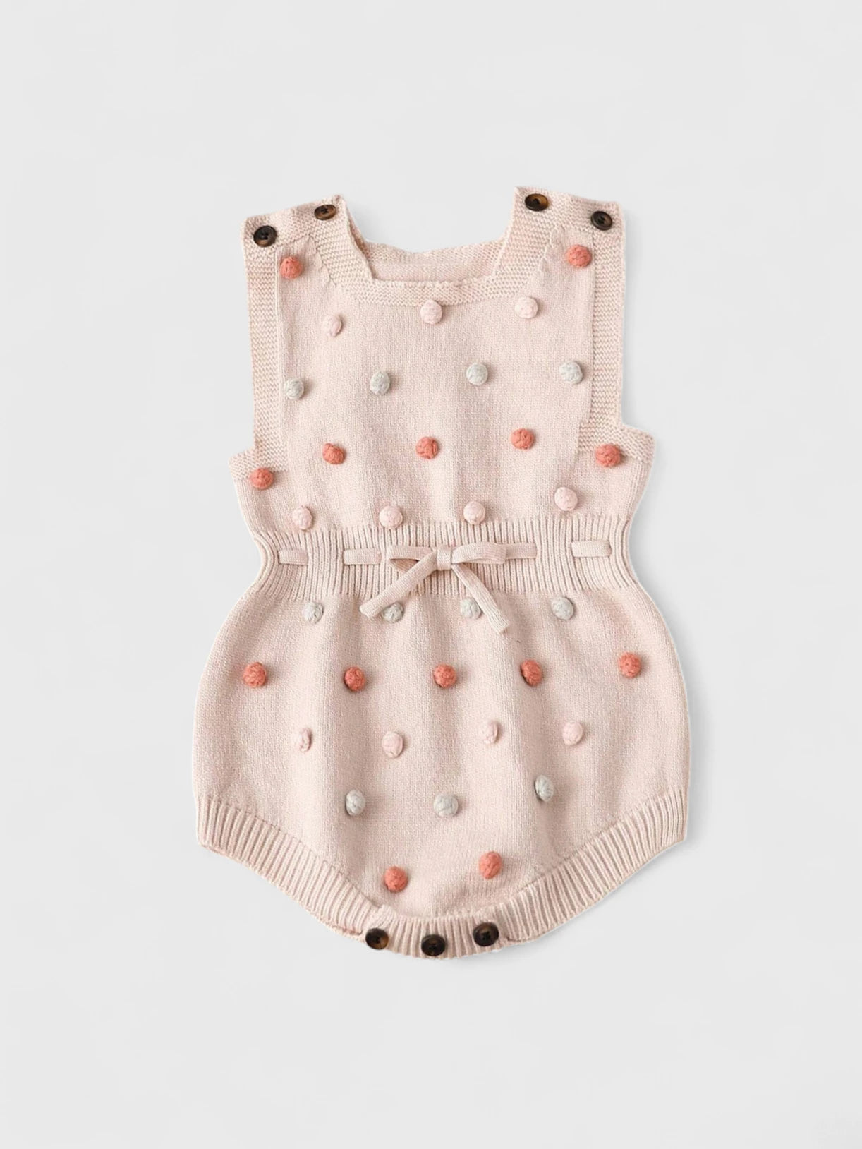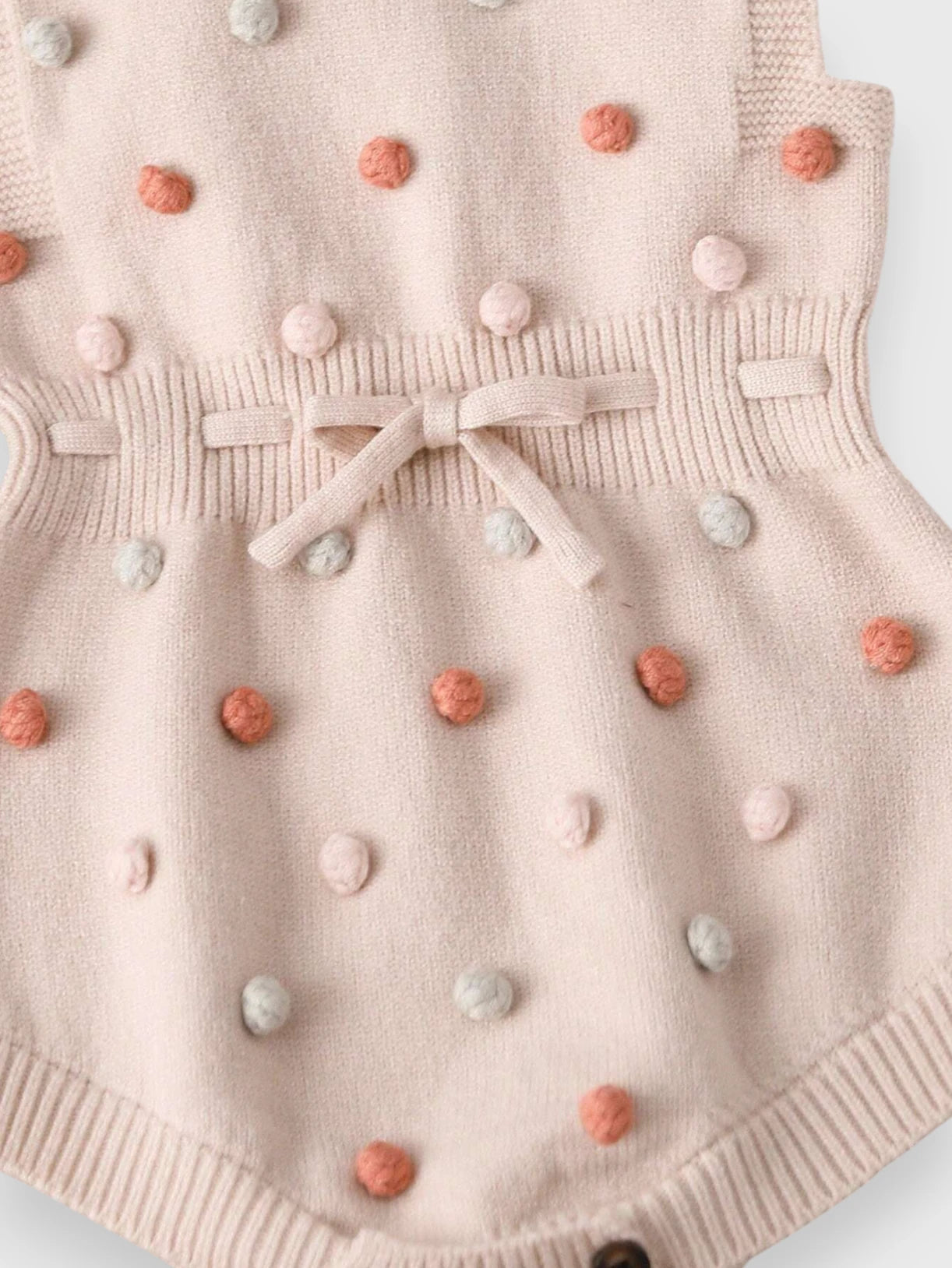 Wrap your little one in cozy charm with this Baby Girl Pom Pom Knitted Bodysuit. Featuring a soft knit fabric adorned with playful pom poms, it’s perfect for keeping her warm and stylish during cooler days.