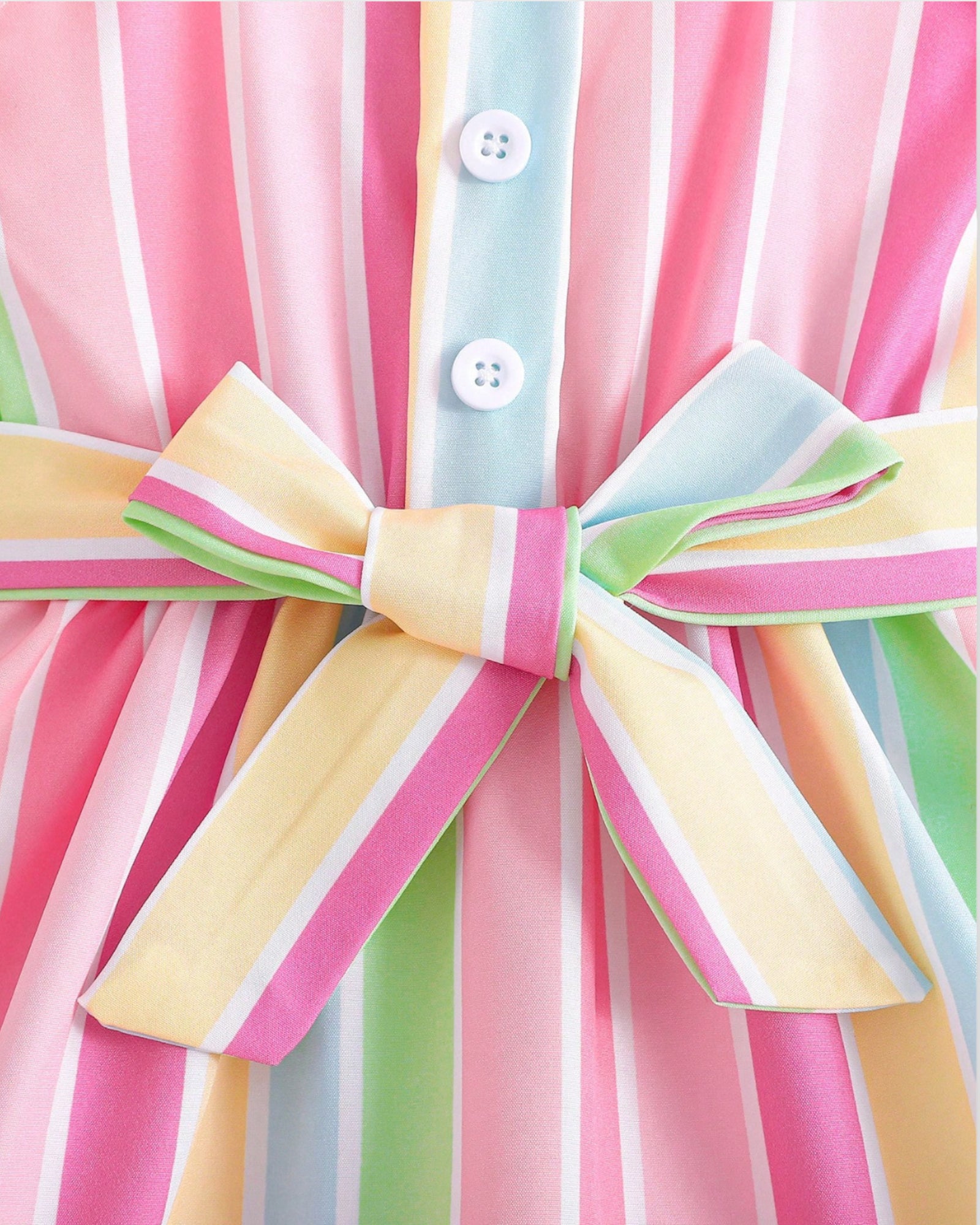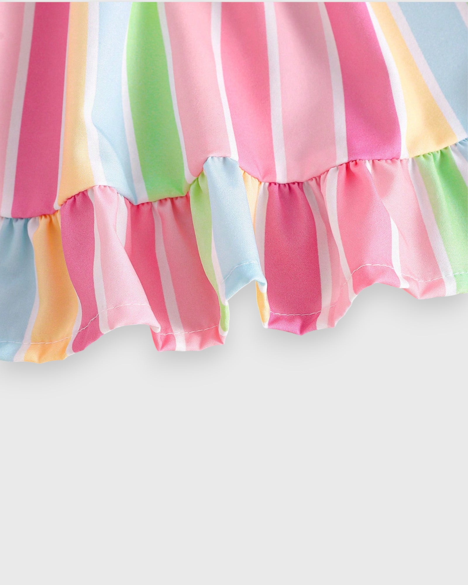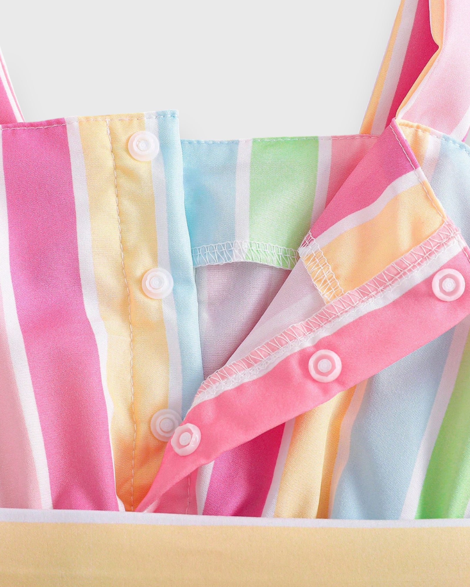 Brighten up her wardrobe with our Rainbow Vertical Stripe Tie Dress! This cheerful piece is like a vacation in an outfit, featuring bold, candy-colored stripes that make her stand out in the best way possible. With its adjustable tie details and breezy fit, it’s the ultimate "toss-on-and-go" dress for seaside strolls or ice cream dates. It’s light, it’s bright, and it’s bound to be her new favorite!