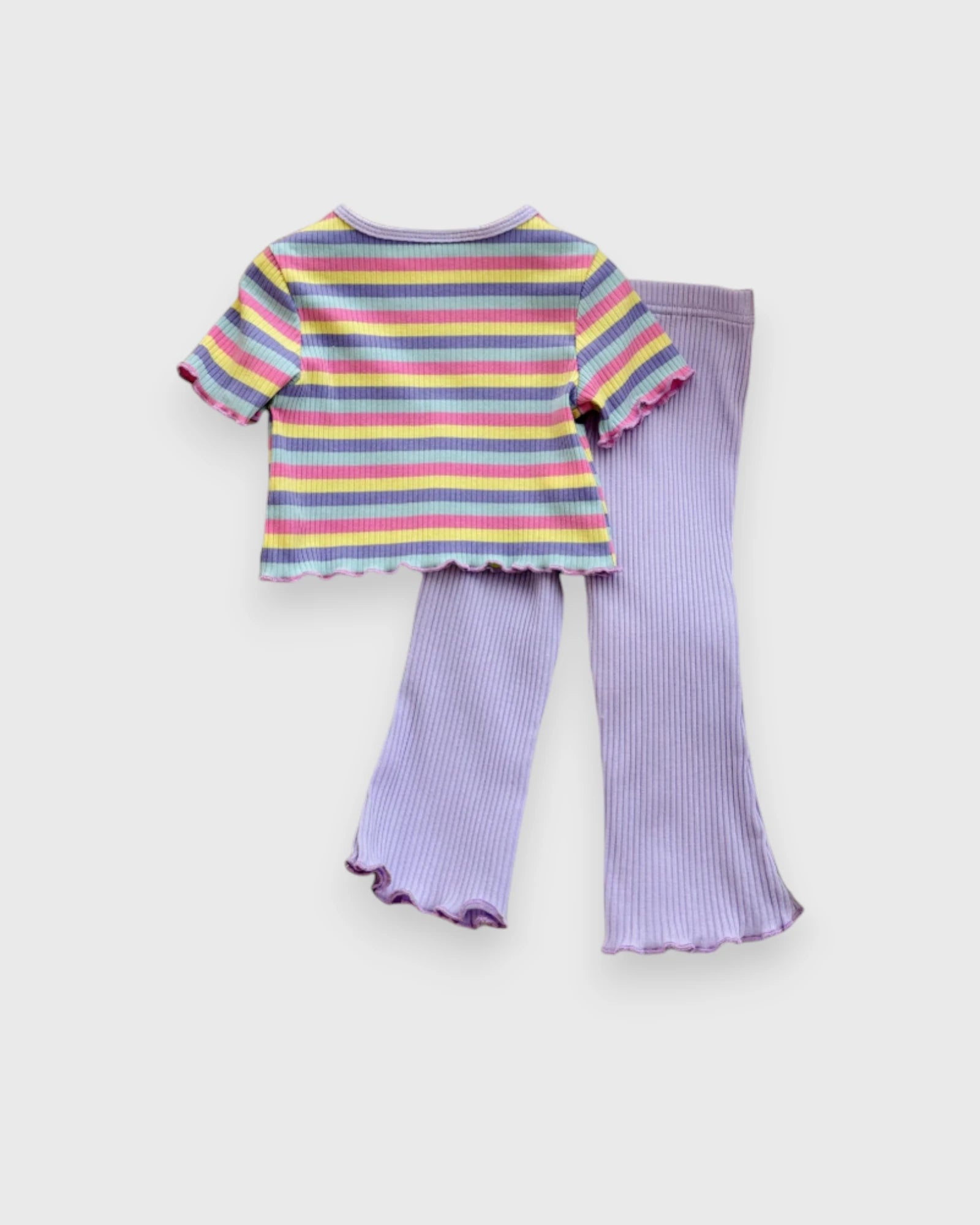 The Baby Girl Ribbed Striped Flower Tee & Leggings Set is a masterful blend of tactile luxury and playful boutique charm. Combining the rhythmic texture of a premium rib-knit with a whimsical botanical accent, this set is the premier choice for preschool playdates, stylish park strolls, and capturing a "blooming" sweetness in everyday moments.