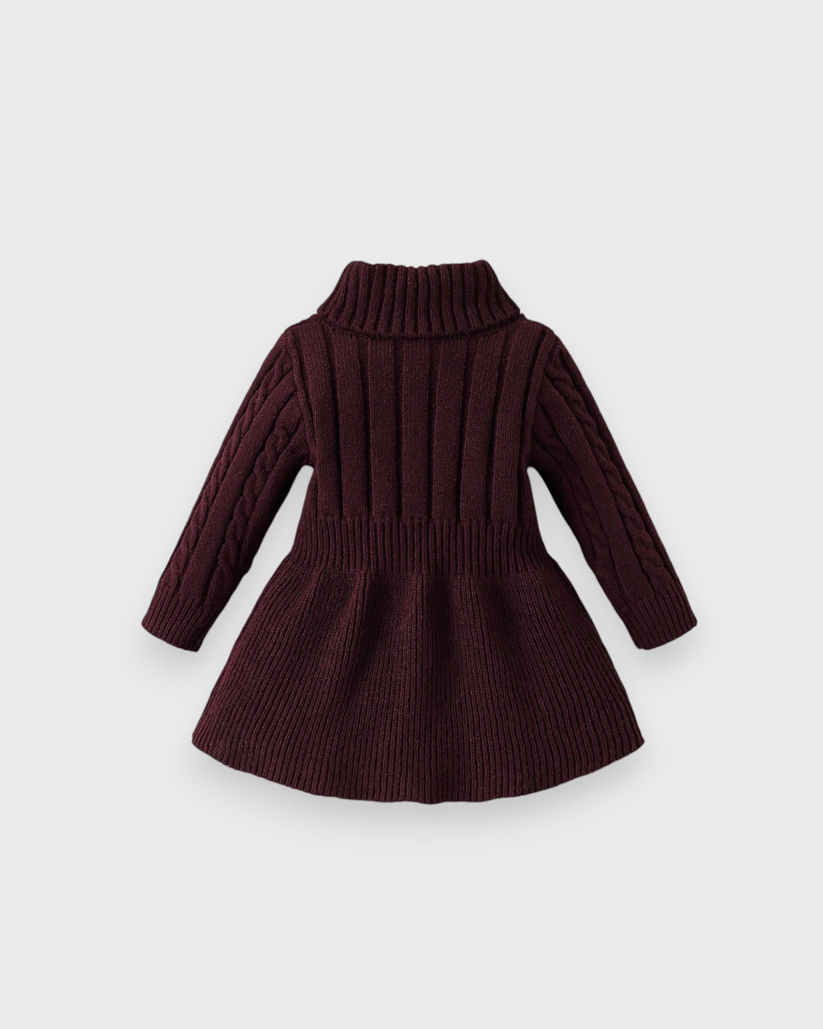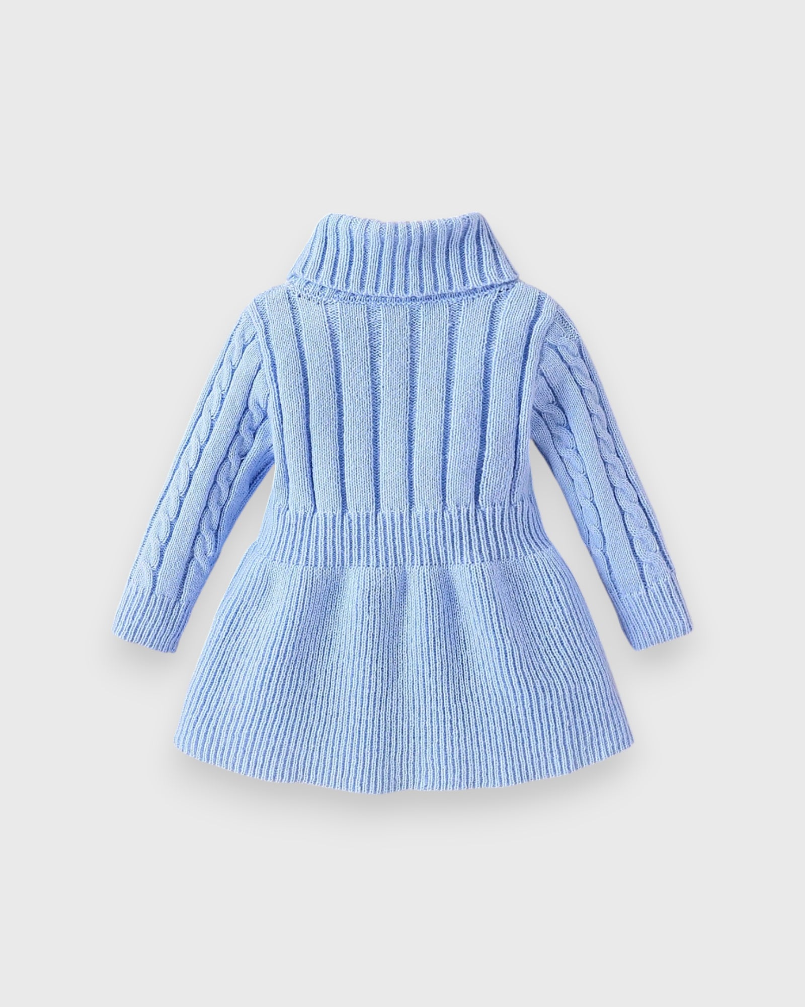 Dress your little one in classic charm with our Baby Girl Cable Knit Collar Pleated Dress. This adorable dress features a cozy cable knit collar and a stylish pleated skirt, perfect for any occasion. Your baby girl will look precious and feel comfortable all day long.