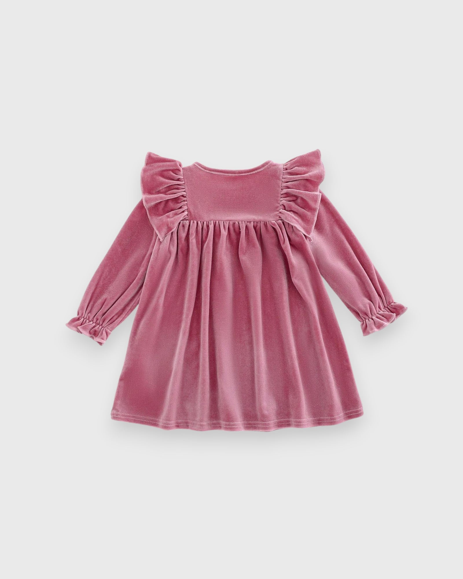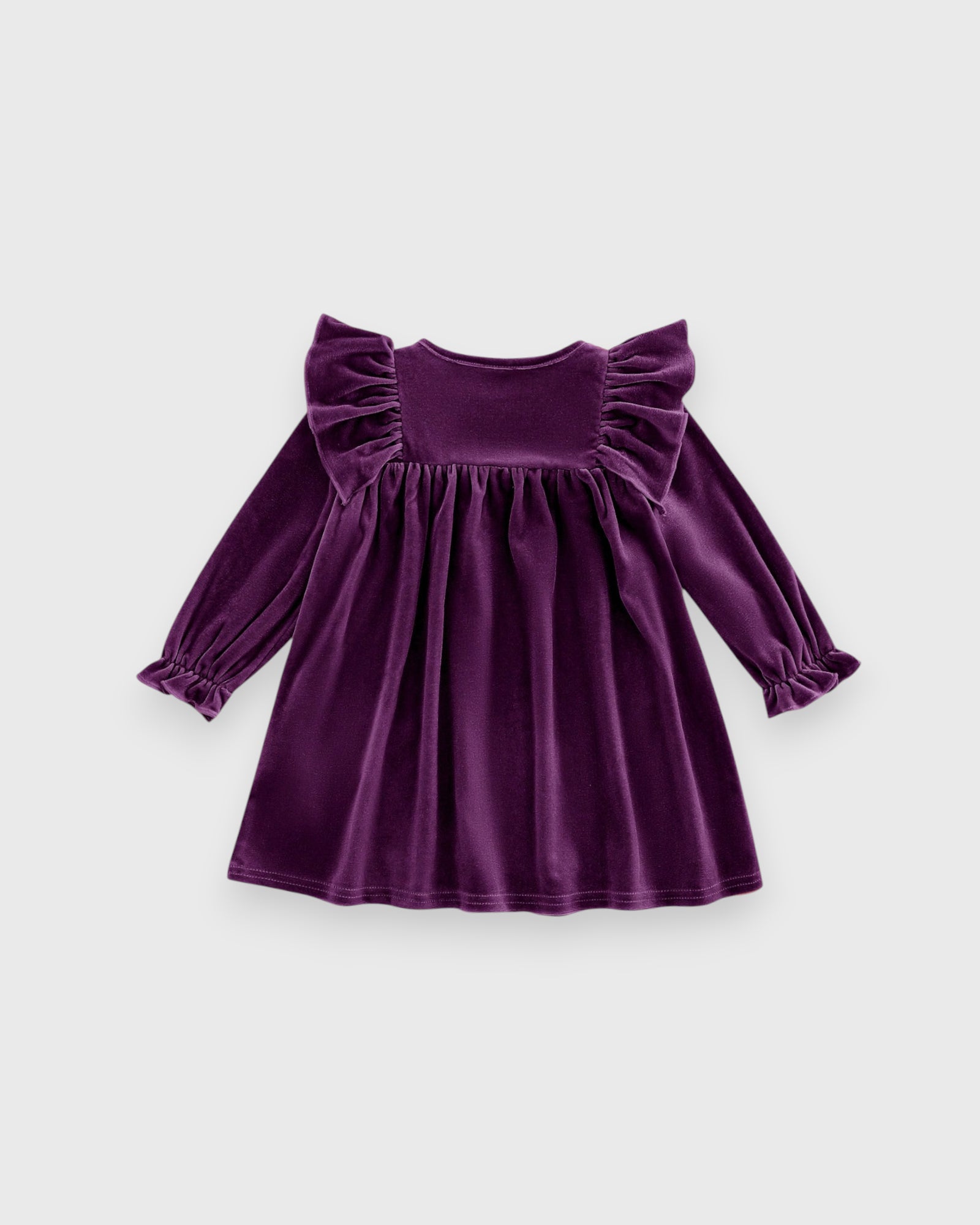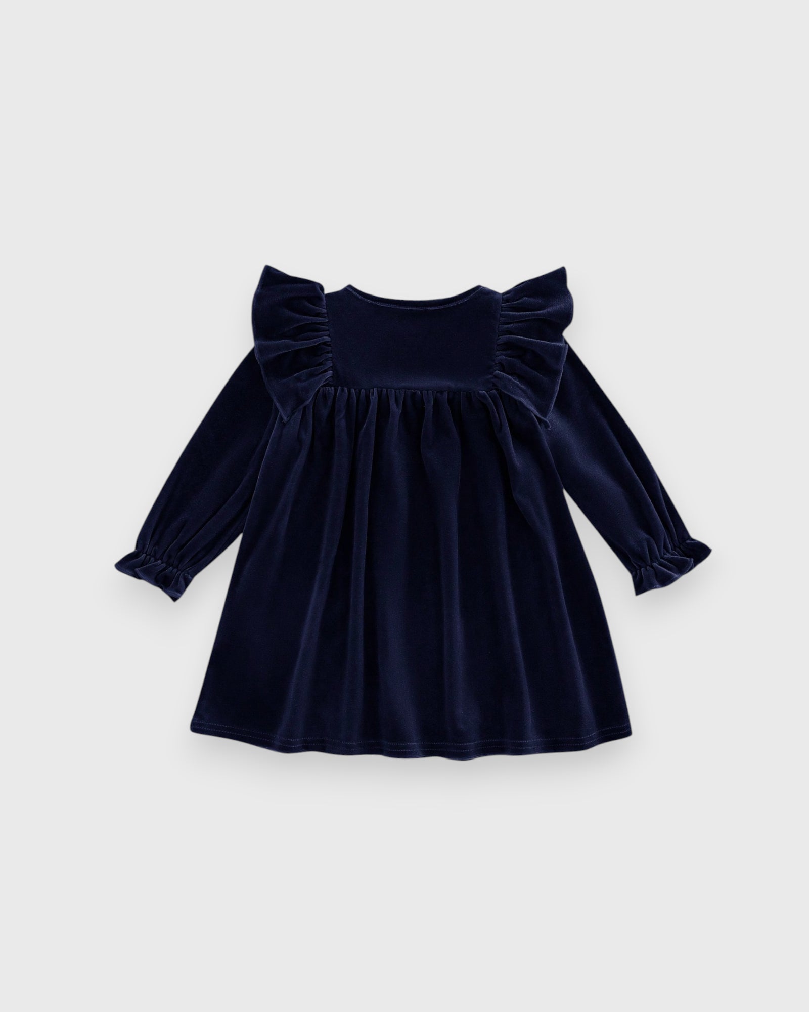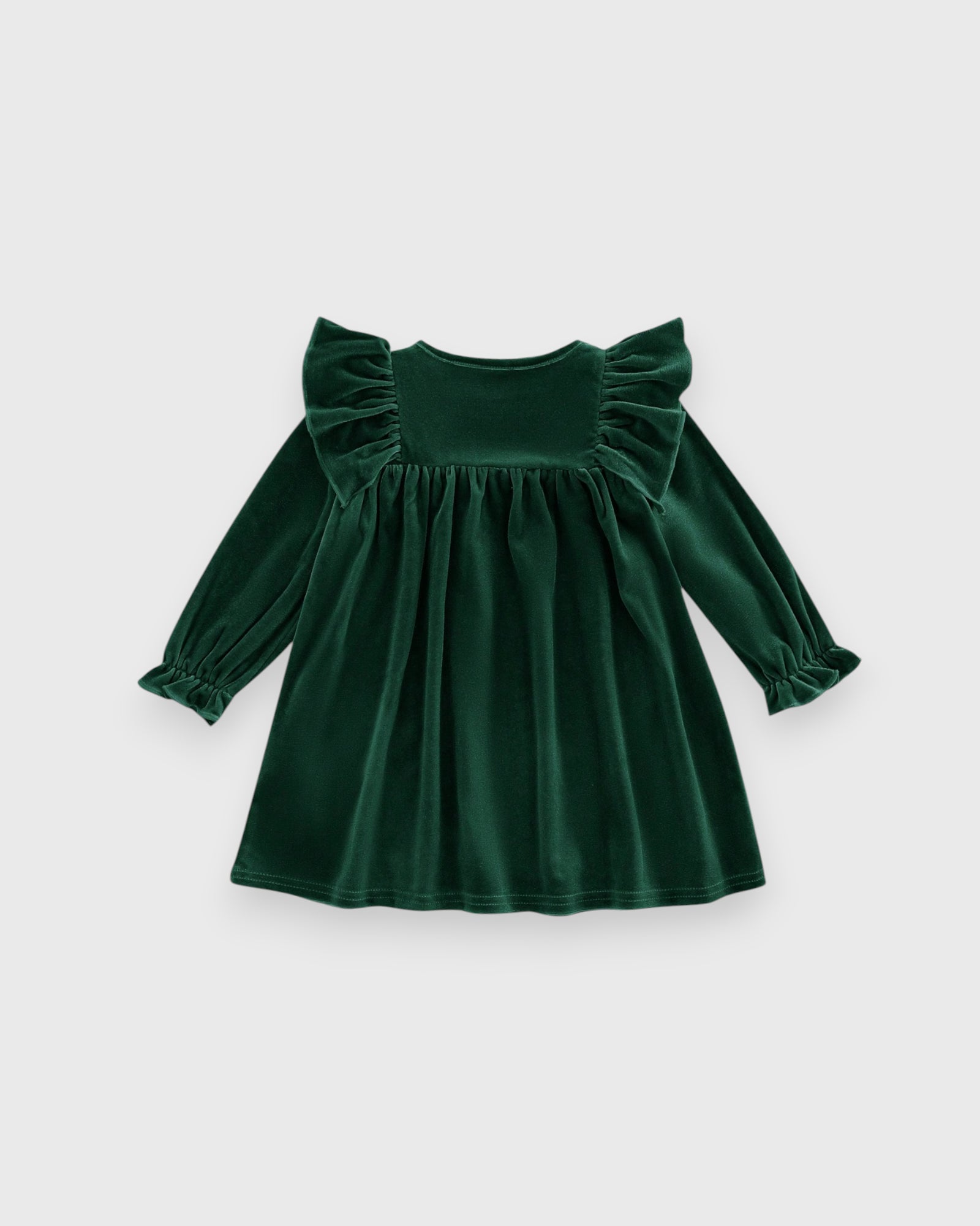 Dress your little one in timeless elegance with this beautiful velvet ruffle flared dress. Made from soft, plush velvet, it features charming ruffle details and a twirl-worthy flared skirt that’s perfect for special occasions, holiday photos, or festive family gatherings. Cozy, stylish, and irresistibly cute—this dress brings effortless charm to every moment.
