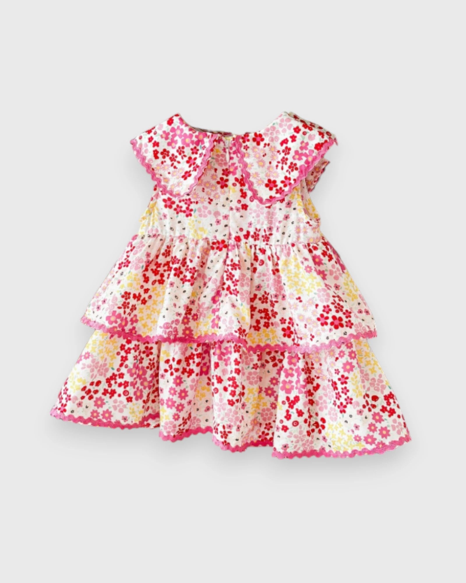 Bring a touch of vintage charm to her closet with this Wavy Trim Ditsy Flower Dress. Featuring a delicate, all-over "ditsy" floral print, this dress is elevated by unique wavy scalloped trim along the edges for a whimsical, high-end feel. It’s a soft, feminine piece that’s as comfortable as it is precious.