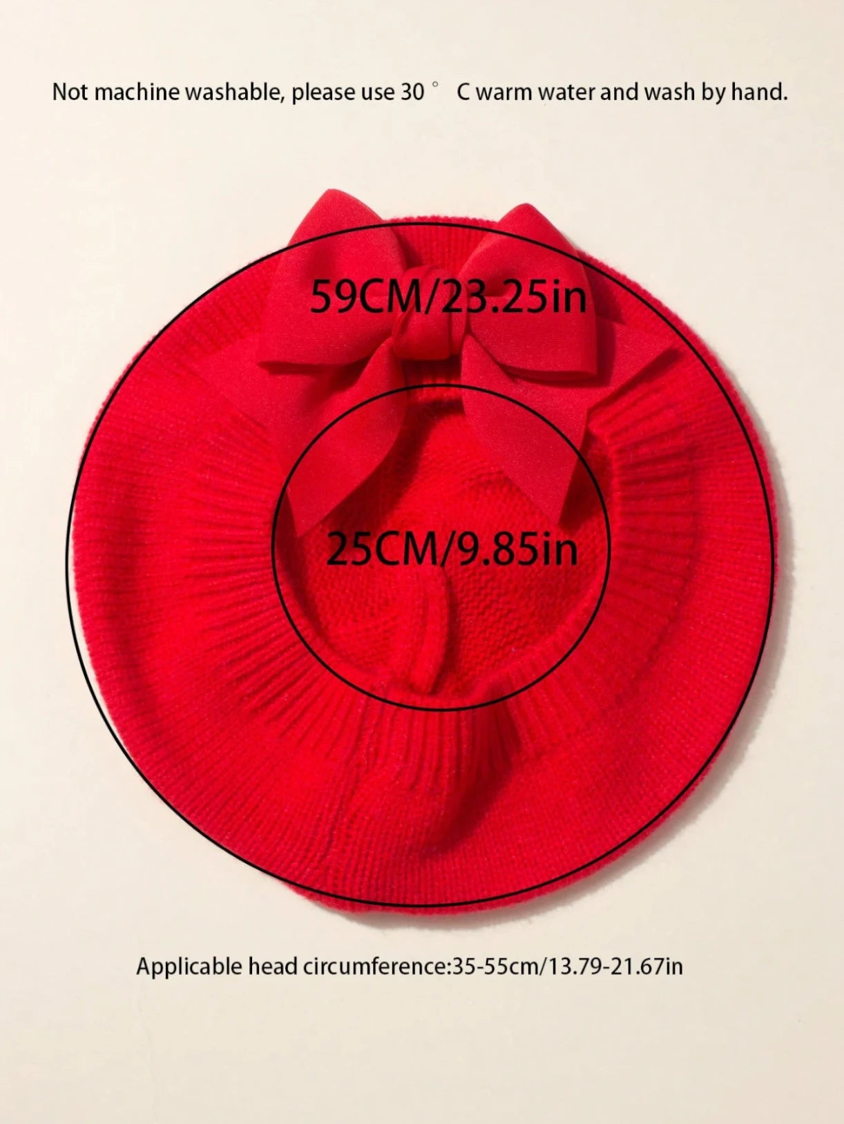 Add a touch of Parisian charm with this Baby Knitted Bow French Beret Hat. Made from soft, cozy knit fabric and finished with a sweet bow detail, it’s the perfect accessory to elevate any fall or winter outfit with timeless style and warmth.