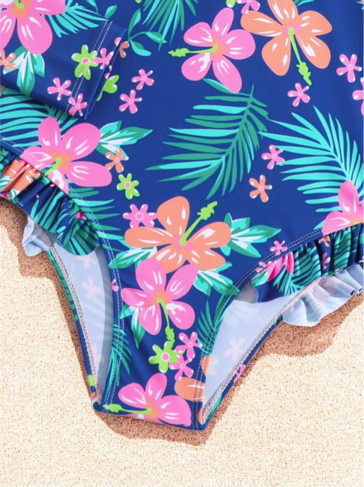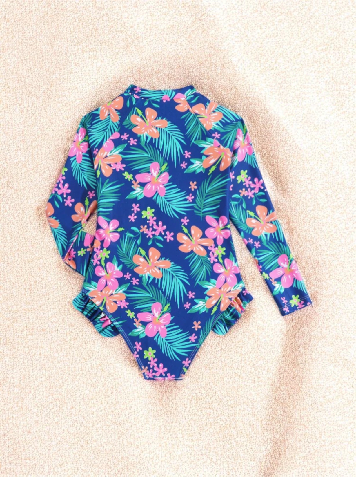 Bring the island spirit to her next swim with the Girls Long Sleeve Palm Leaf Swimsuit. This boutique-inspired one-piece combines a sophisticated botanical print with a sporty silhouette, making it the perfect choice for the girl who loves to surf, swim, and explore under the sun.