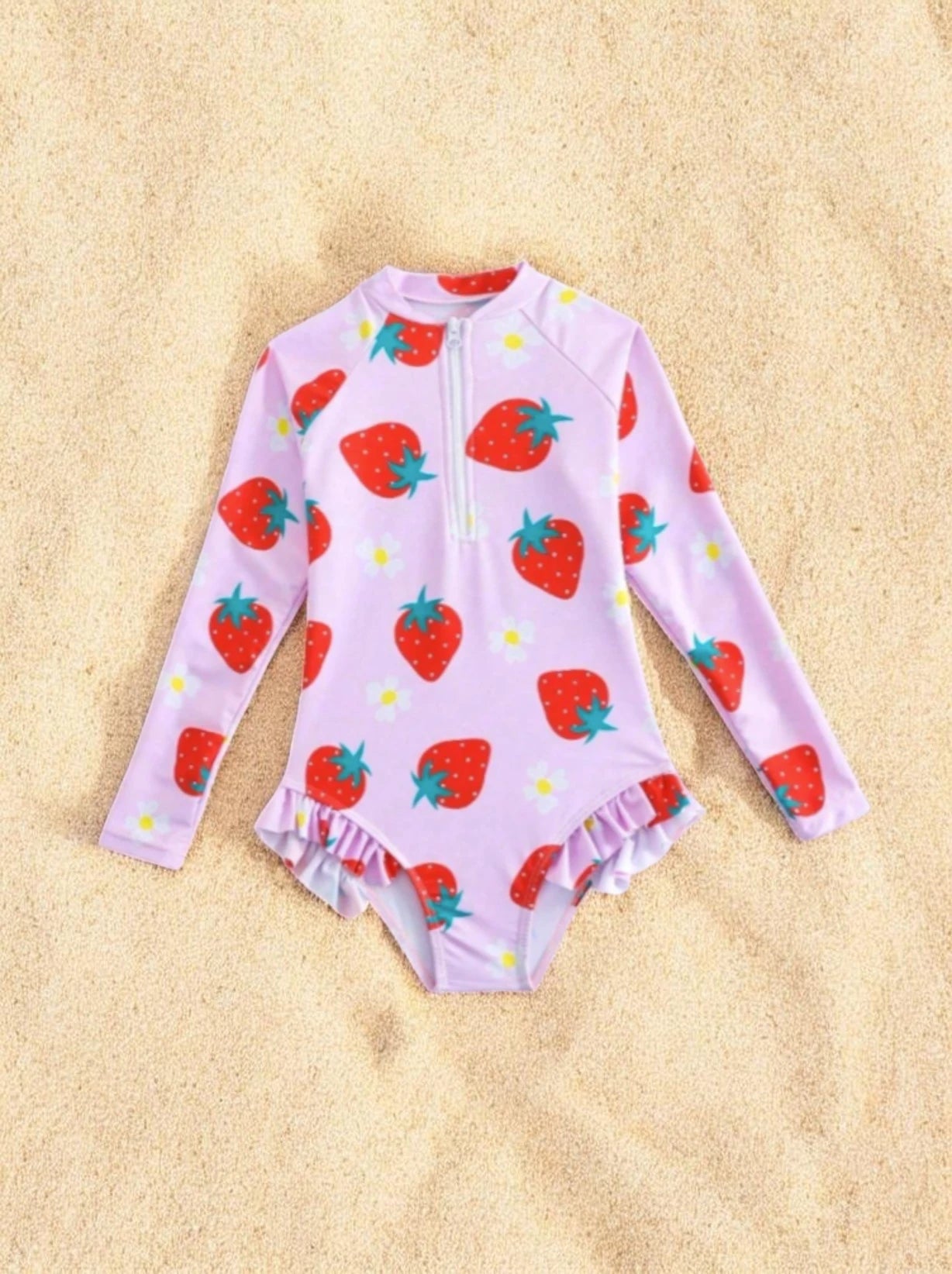 Keep her cool and shielded from the waves with the Girls Long Sleeve Strawberry Swimsuit. Combining a trendy "surf-girl" silhouette with a classic boutique print, this one-piece is the ultimate blend of high-fashion style and maximum sun safety.