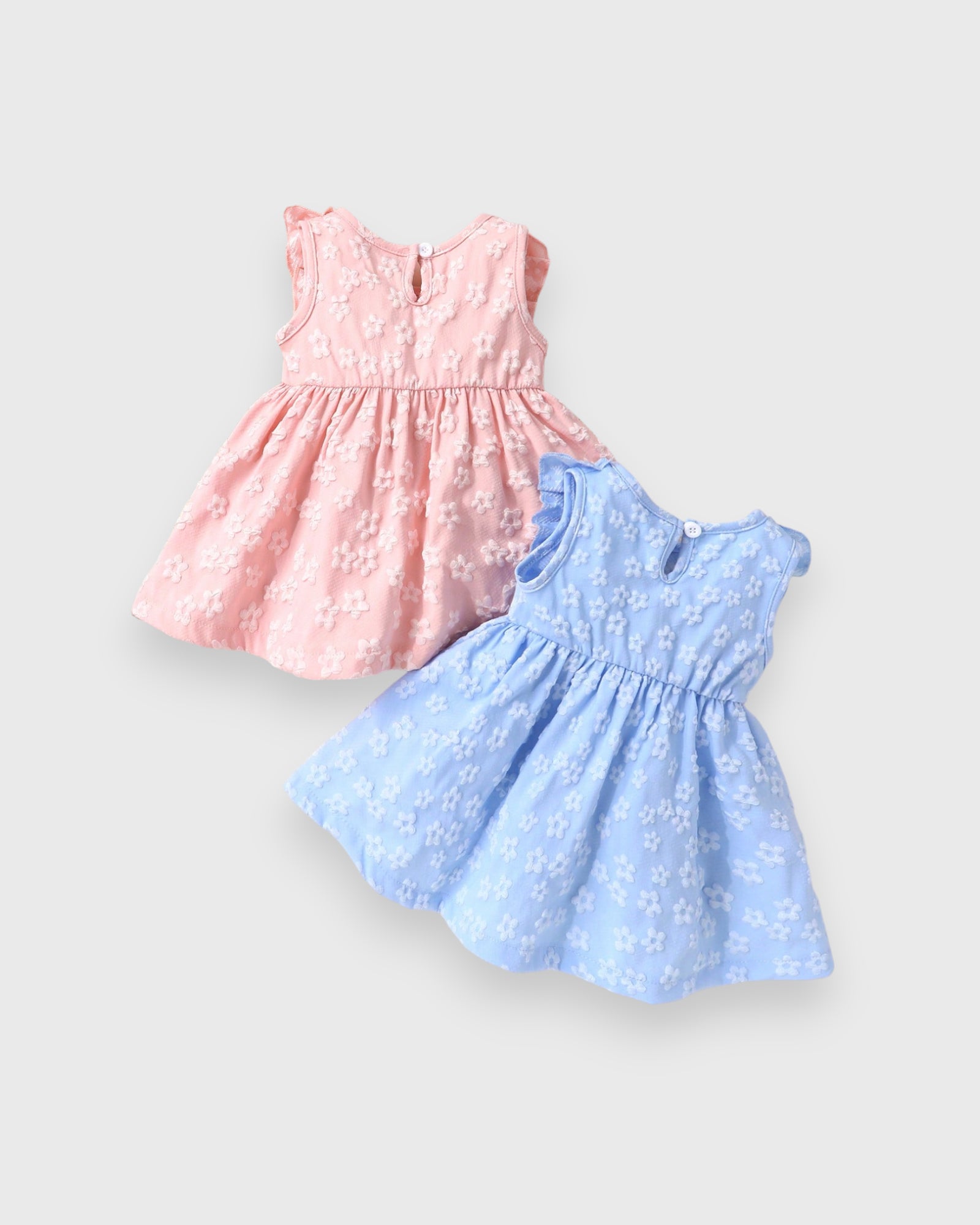Give your little one twice the charm with this adorable Set of 2 Flower Emboss Dresses! Each dress is beautifully designed with elegant texture, playful ruffle sleeves, and a charming big bow, making them perfect for parties, playdates, and everyday sweetness.